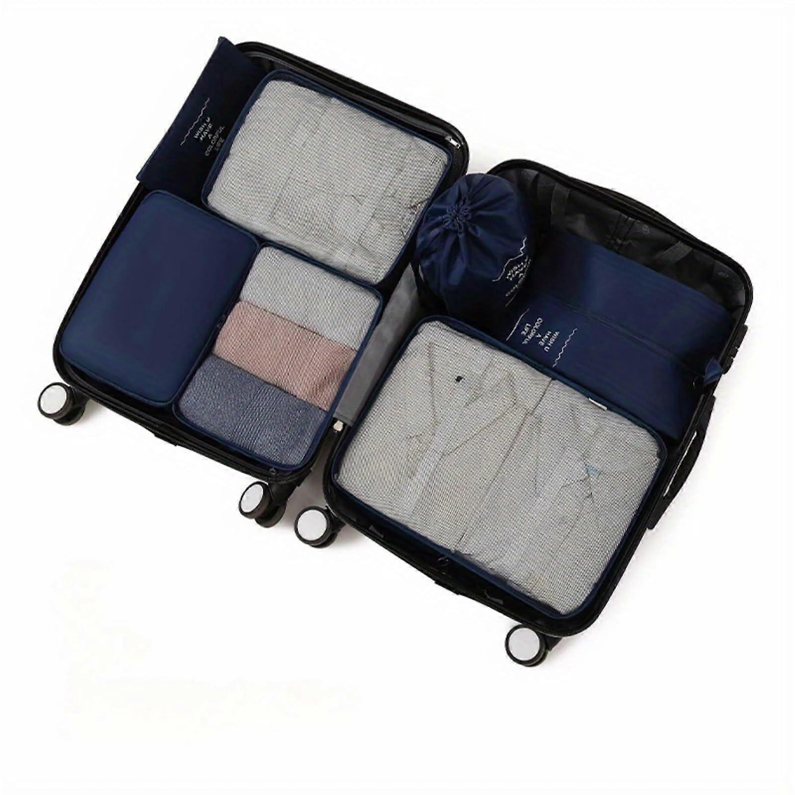 7 Piece Packing Cubes Travel Organizer Set with Clothing and Shoe Bags, UltraLightweight, Deep Blue