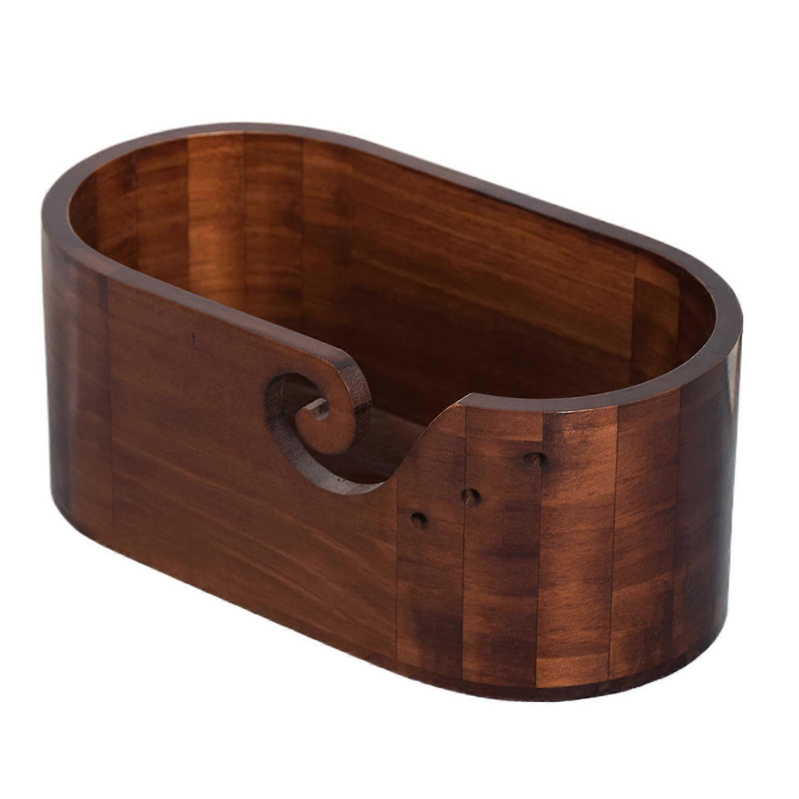 Large Wooden Knitting Yarn Bowl with Holes for Smooth Yarn Output and Crochet Storage
