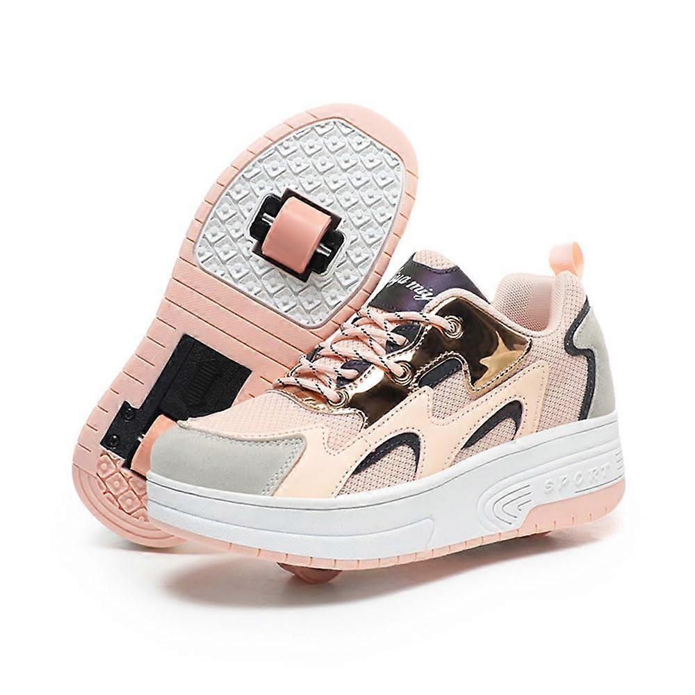 Kids Roller Skate Shoes with Retractable Wheels, 2in1 WearResistant Sneakers for Girls Pink 1.5 UK