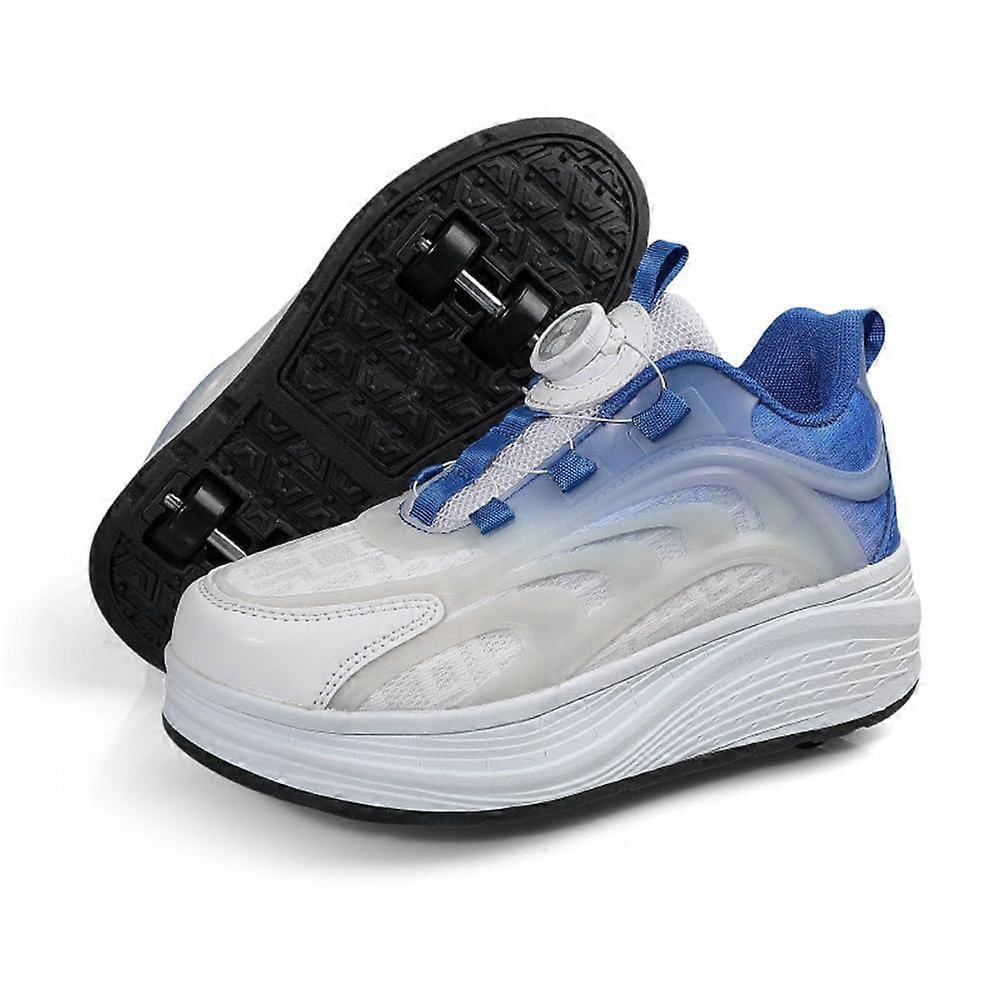Kids Roller Skate Shoes with Retractable Wheel Design, 4Wheel Unisex Skating Sneakers Blue 7.5 UK