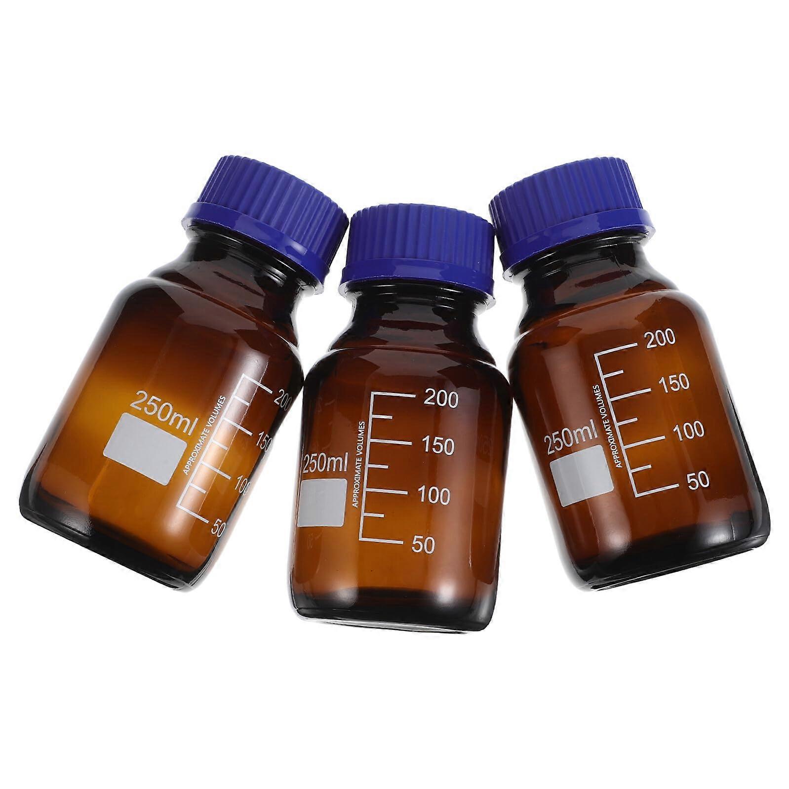 3pcs Small Brown Lab Glass Bottles with Caps, LeakProof UV Protection and Graduation Marks