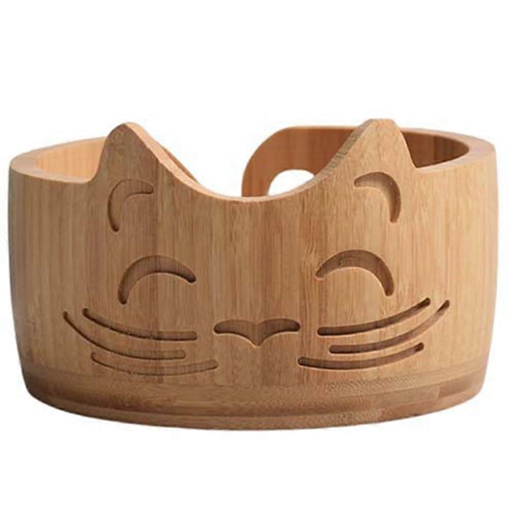 Cat Shaped Wooden Yarn Bowl with Tangle Spiral Cut for Knitting and Crochet Storage