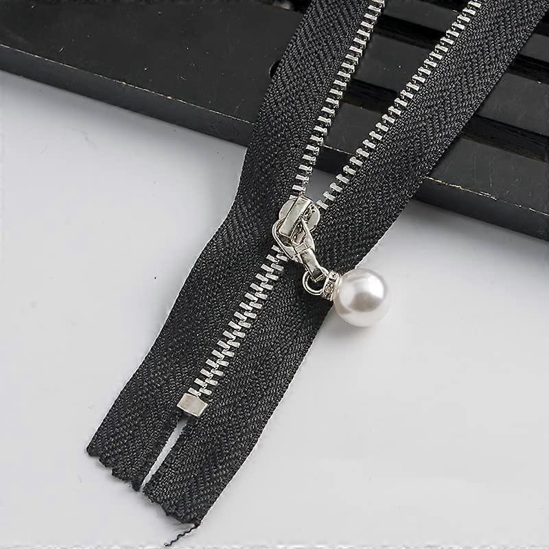 Metal Zipper with Pearl Finish Close End for Sewing Jackets Bags Clothes 30cm Black 2pcs