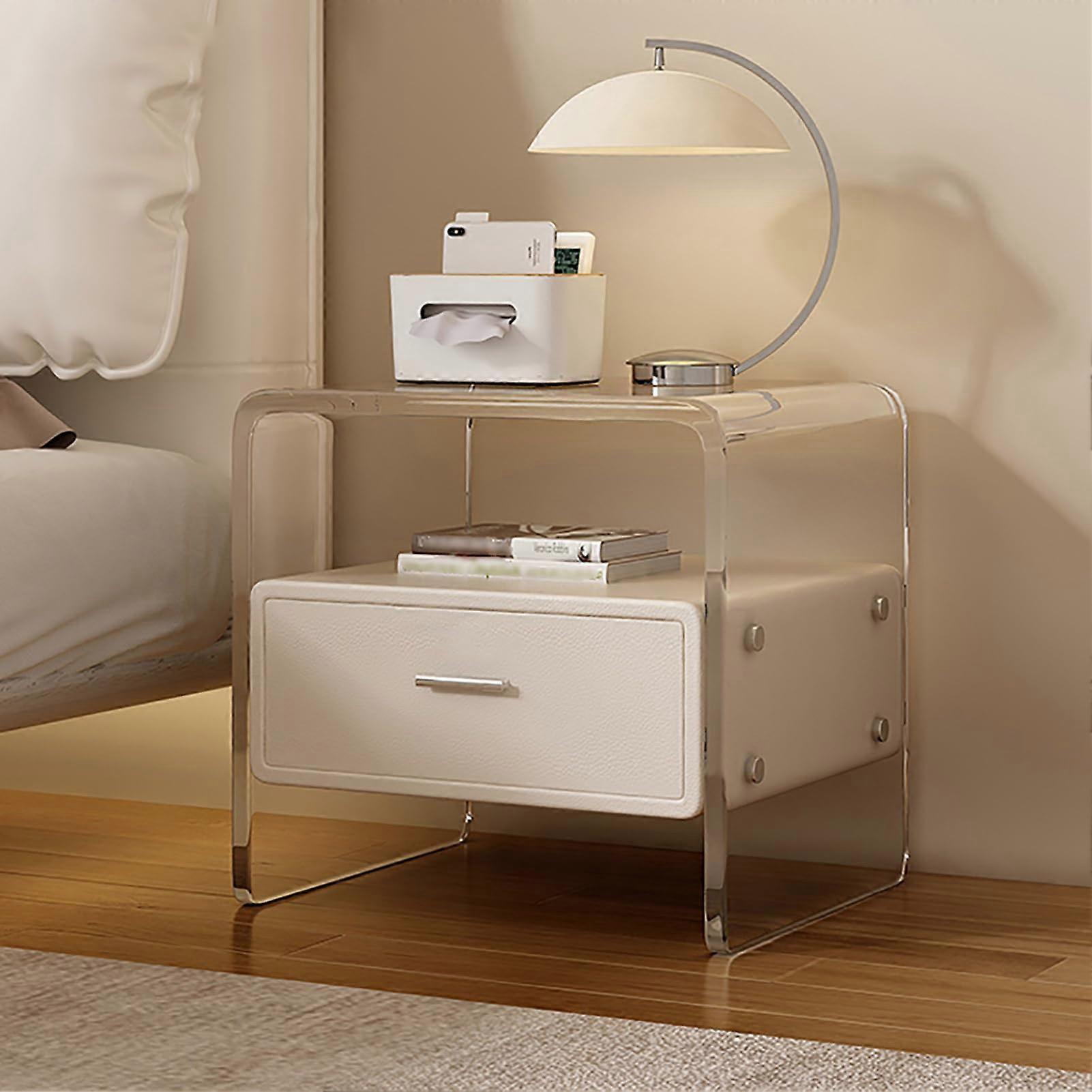 Modern Nightstand with Drawer, Wooden Bedside Table with Large Storage and Acrylic Base, Beige