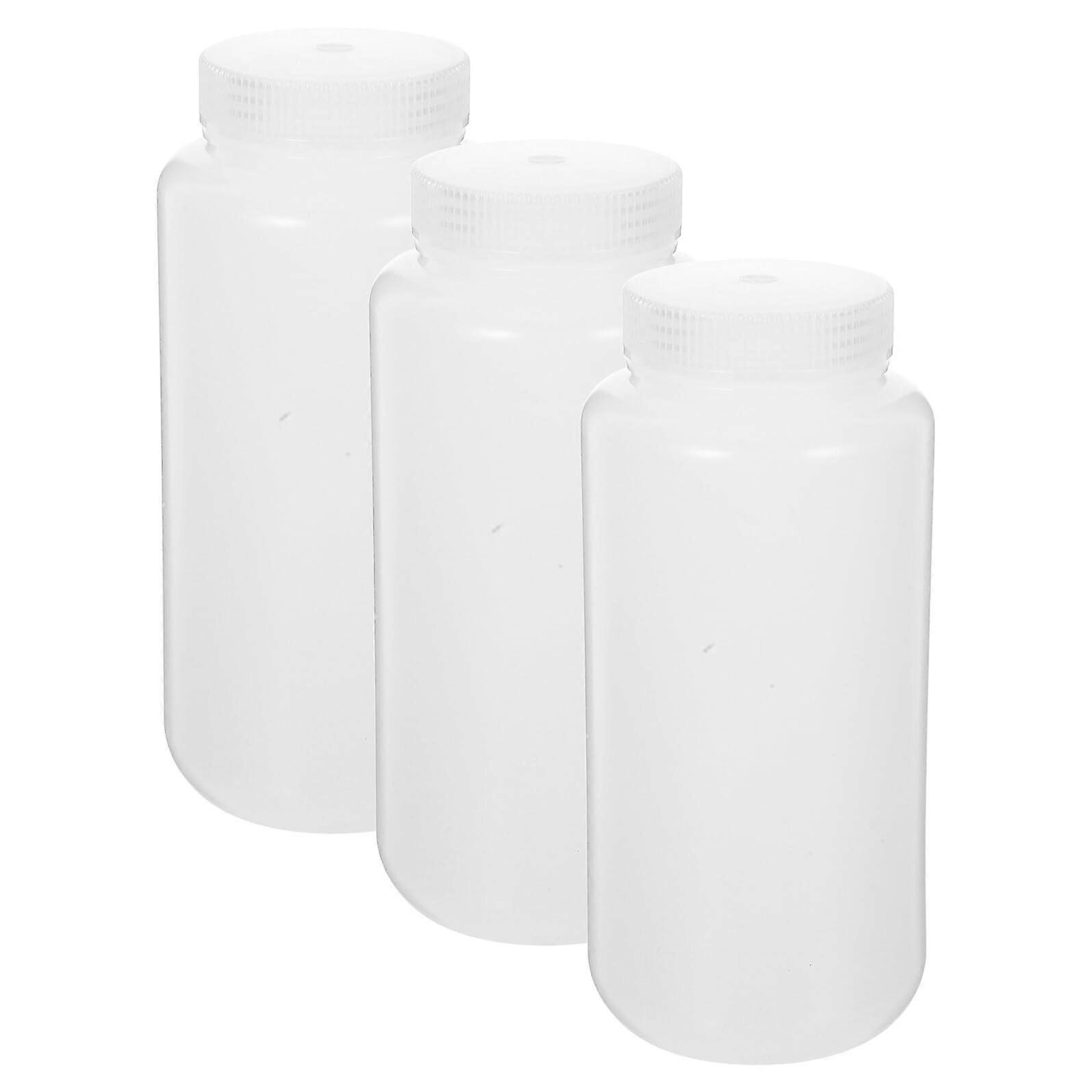 3pcs Wide Mouth Lab Bottles Leakproof Plastic Reagent Containers White Sample Storage for Laboratory Use