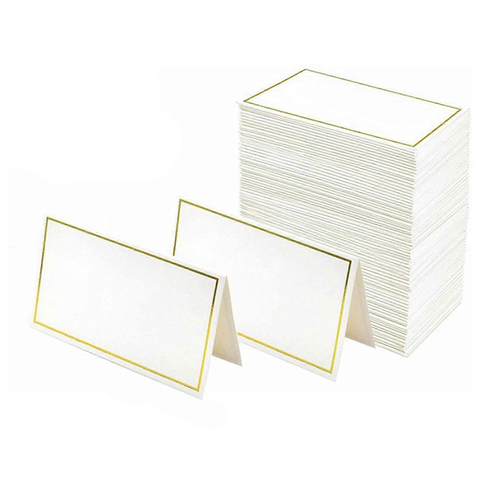 50 Pcs Gold Foil Place Cards for Weddings, Blank Foldable Name Cards for Banquet and Parties