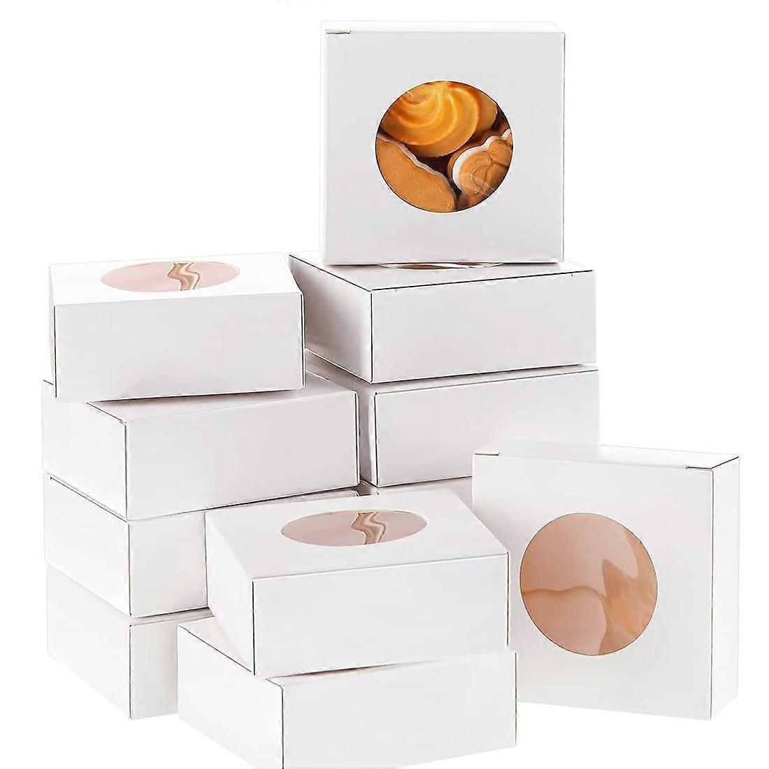 12 Pcs Small White Kraft Paper Gift Boxes with Clear Window for Dessert Cake Candy Cupcake
