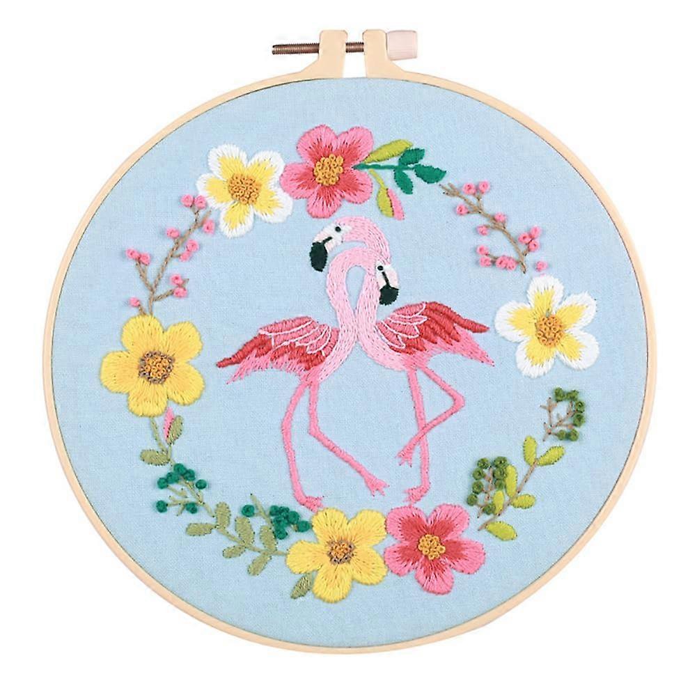 Embroidery Starter Kit with Flamingo and Flower Wreath Patterns, DIY Set with Hoop and Threads