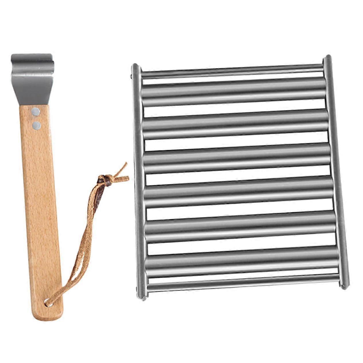 BBQ Sausage Grill Rack with Wooden Handle for Even Heat Outdoor Camping Hot Dog Roller