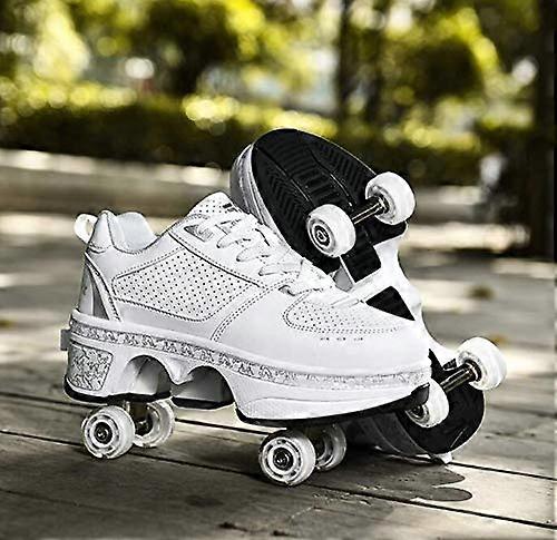 Roller Shoes with LED Lights, 2in1 Retractable Wheel Sneakers for Kids and Adults, White EU36