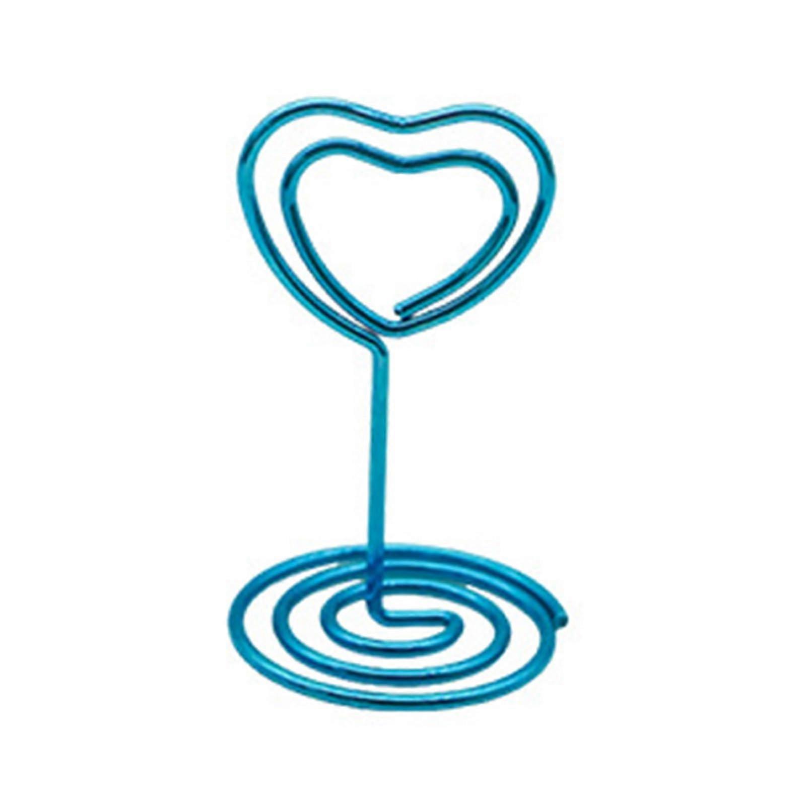 10Pcs Heart Shaped Table Number Holders Iron Wire Place Card Stand for Wedding Party Photo Display Bright Blue