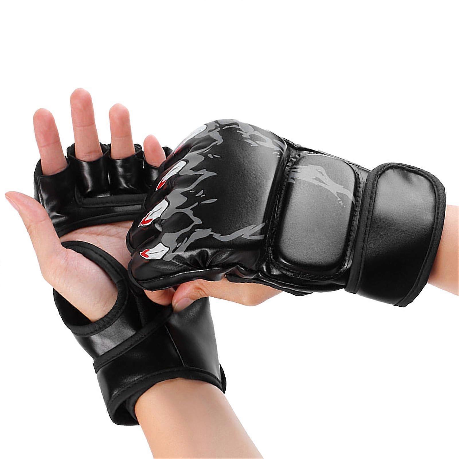 Half Finger Boxing Gloves with Open Palm, Adjustable Wrist Support, Breathable PU Leather for Training and Sparring, Black