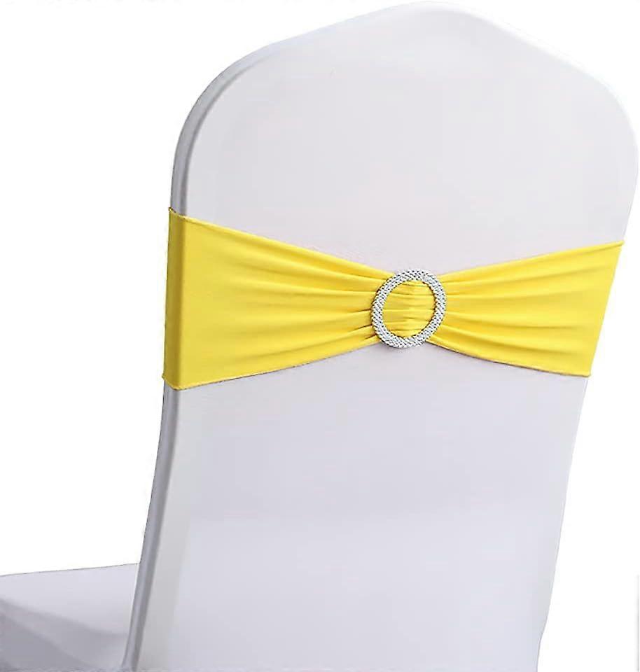 Easytouse spandex chair bands with a movable silver round buckle and rhinestone ring for a quick, elegant finish. Key benefits Fast application: stretch the band over an existing chair cover—no tying required. Adjustable look: silver round buckle slider can be moved to adjust fit and style; the buckle is fixed to the band and cannot be removed. Decorative detail: rhinestone ring buckle adds a subtle, romantic accent suitable for weddings, parties, and events. Durable and flexible: elastic spandex with stitched hemming resists fraying and maintains shape through repeated use. Product specifications Band size: 13 x 35 cm (5.11 x 13.77 inches) Buckle diameter: 6.5 cm (2.55 inches) Material: elastic spandex with stitched hem edges for durability Buckle: silver round slider with rhinestone ring; movable along the band but not detachable How it solves common problems Replaces timeconsuming bow tying with a smooth, consistent look in seconds. Fits a range of chair covers thanks to stretchable material and adjustable buckle placement. Machine or handwashable (gentle cycle) for easy maintenance and reuse. Compatibility and care Designed to be used over chair covers; compatibility depends on chair cover size and style—stretchable material provides good flexibility. Wash by hand or machine on a gentle cycle; avoid harsh bleaching agents to preserve color and rhinestones. Note: Only chair sashes/bands are included. Chairs and chair covers are not included. Packaging options Available packs: 20 pcs / 50 pcs / 100 pcs Each pack is placed into protective plastic bags to reduce damage during . Color and photography note Product photos were taken with actual items; colors shown may not exactly match the physical product due to lighting and screen differences. Practical use scenarios Wedding receptions: quickly add uniform, elegant accents to row seating or roundback chairs without lastminute tying. Banquets and parties: standardize chairs for large events with reusable, washable bands that save setup time. Corporate events or photo backdrops: create a polished, consistent appearance across multiple chairs with minimal effort.