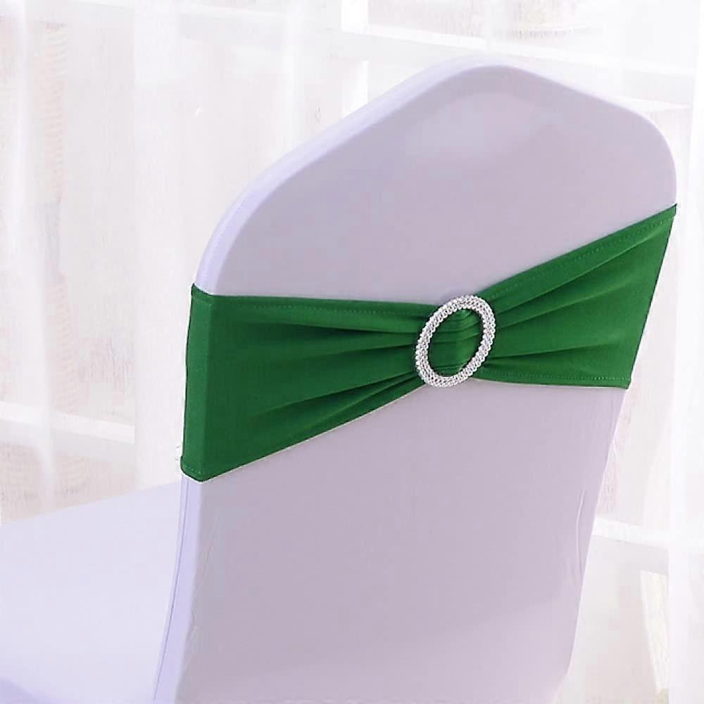 50pcs Chair Sashes with Buckle for Wedding Party, Elastic Bow Knot Covers, Emerald Green