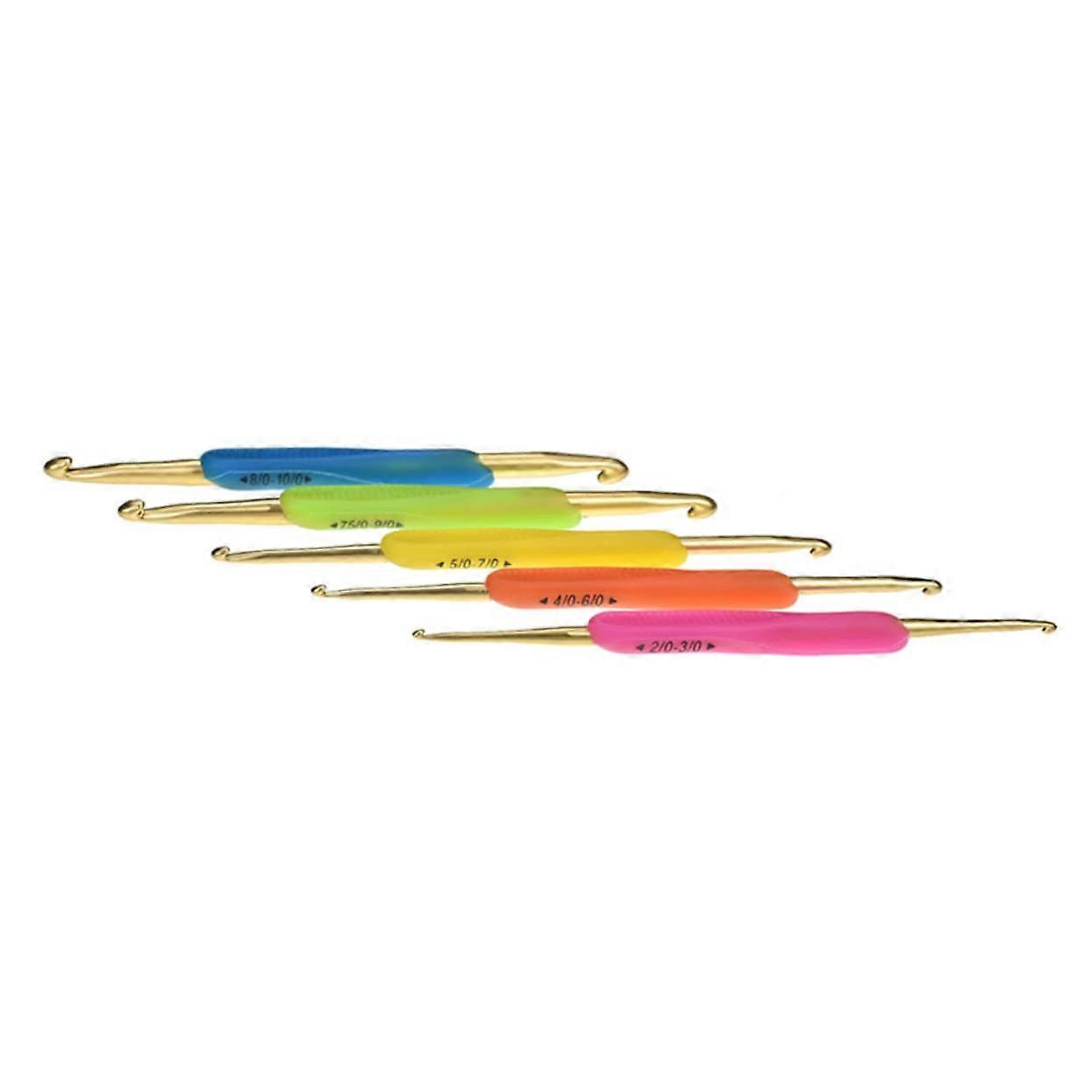 Ergonomic Aluminum Crochet Hooks Set 5pcs AntiSlip TPR Handle with Storage Bag for DIY Yarn Craft