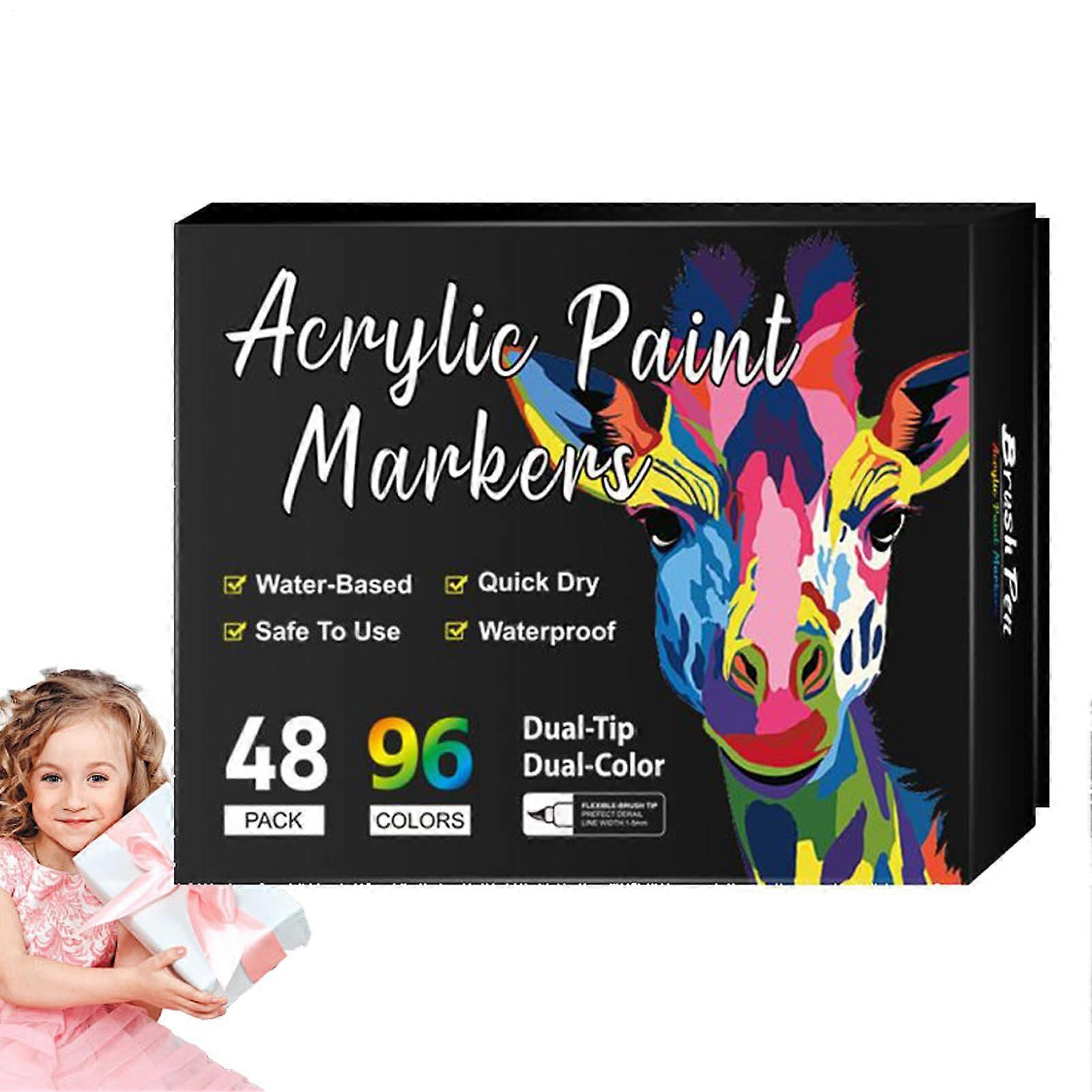 Acrylic Paint Markers Set 96 Vibrant Colors Double Tip Waterproof Permanent for Rock Glass Wood Crafts