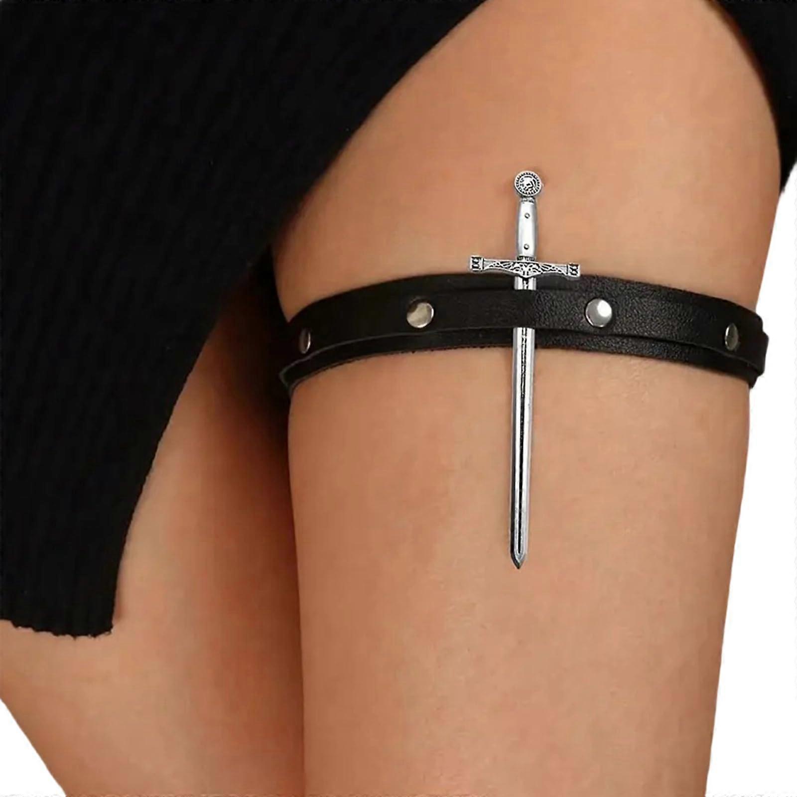 Punk Leg Garter with Adjustable Buckle Straps and Soft Leather Lining for Festivals and Street Fashion
