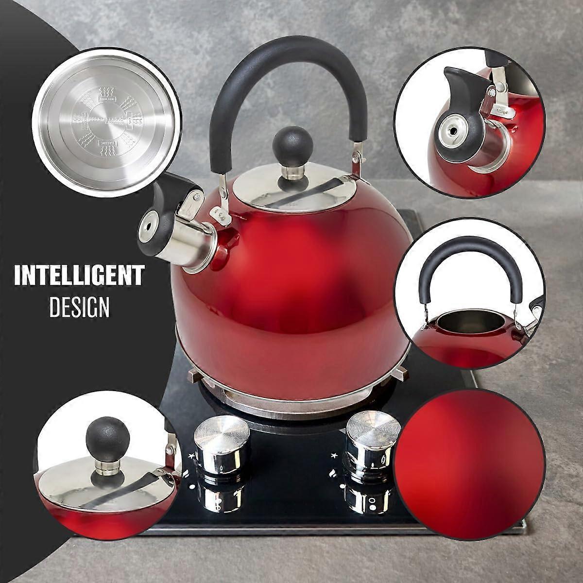 2.5L Stainless Steel Whistling Kettle for Camping with Fast Boil, Cool Touch Handle, Red