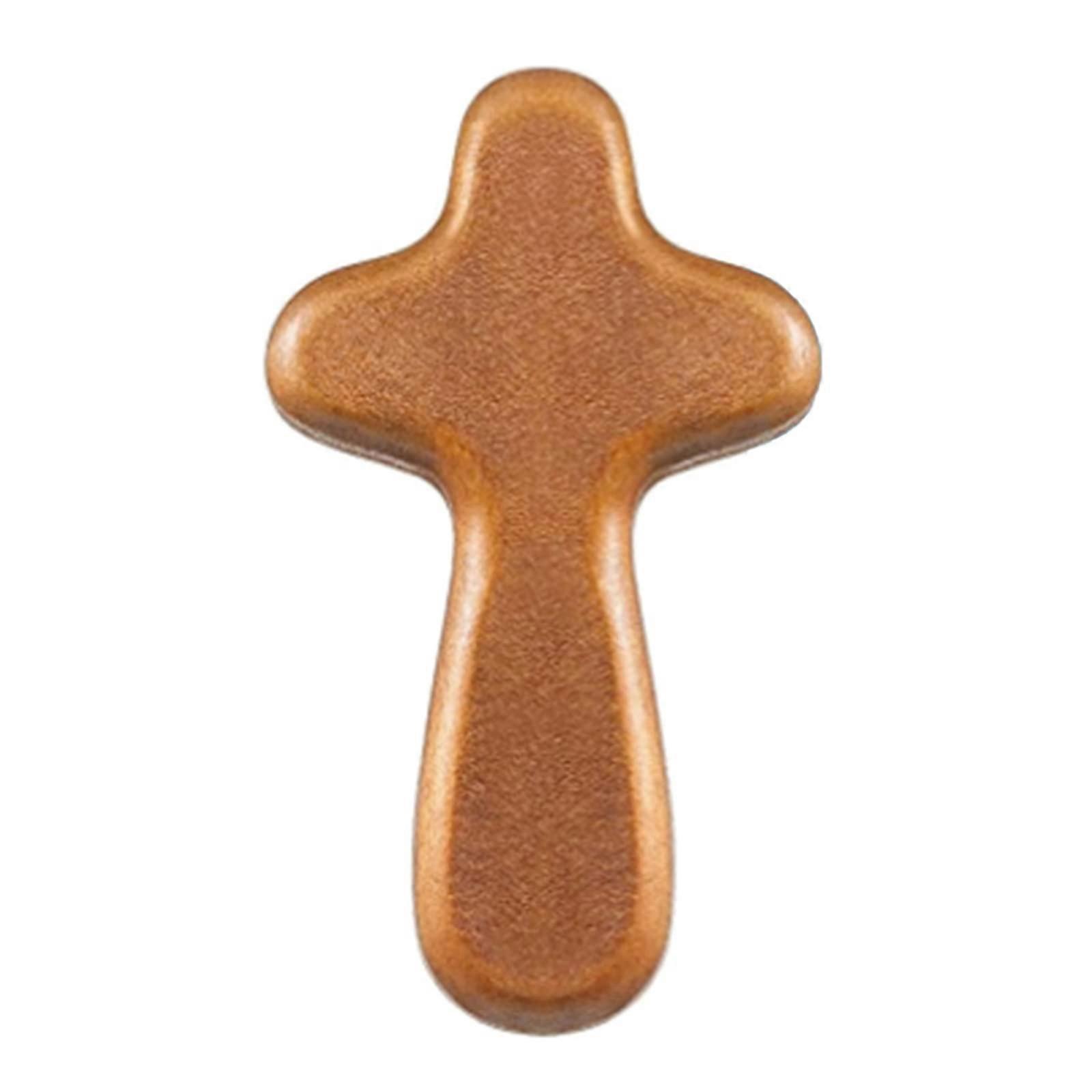 Wood Palm Cross Handmade Wooden Comfort Cross for Prayer Ergonomic Palm Fit Religious Gift Brown