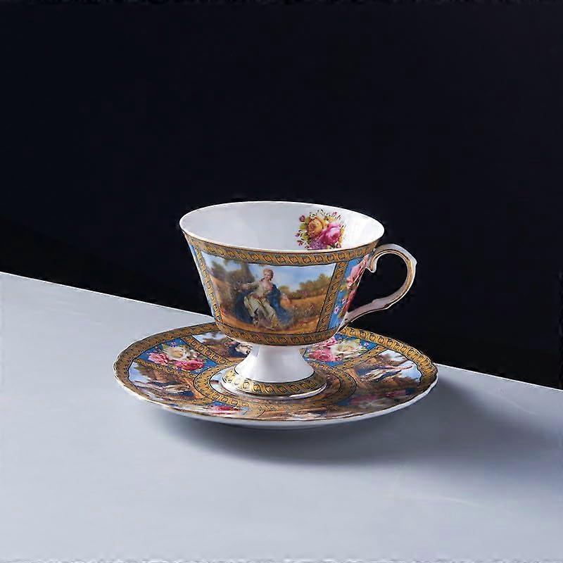 Handmade Ceramic Coffee Mug Set with Saucer Vintage Woman Portrait Pottery Tea Cup Dishwasher Safe