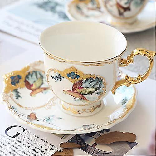 Handmade Ceramic Coffee Mug Set with Parrot Design and Saucer, Smooth Glaze, Wedding Gift