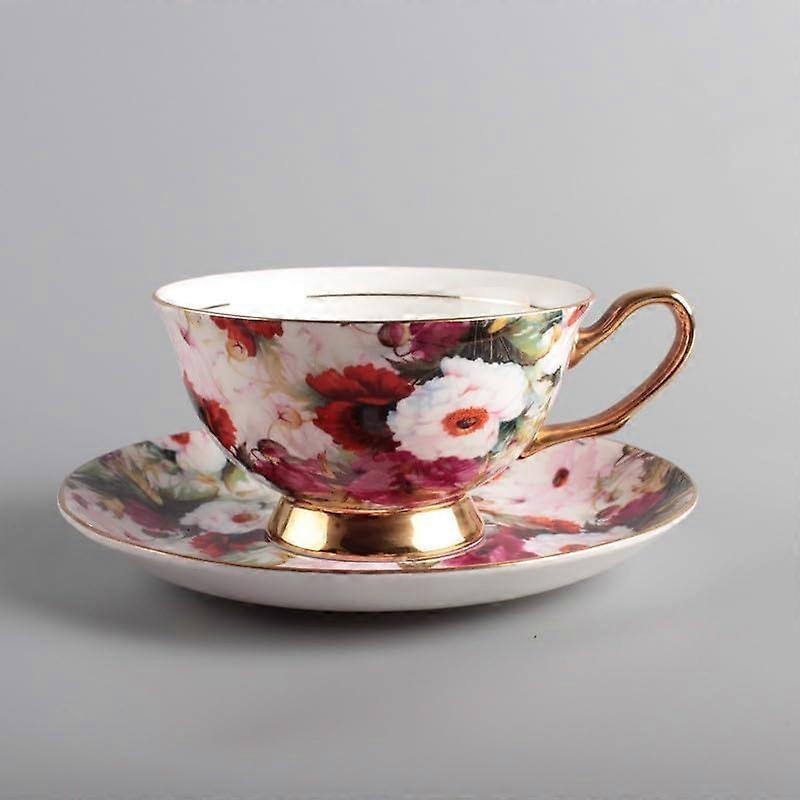 Ceramic Coffee Mug Set with Saucer, Handmade Floral Pottery 220ml Cup for Tea, Office and Home