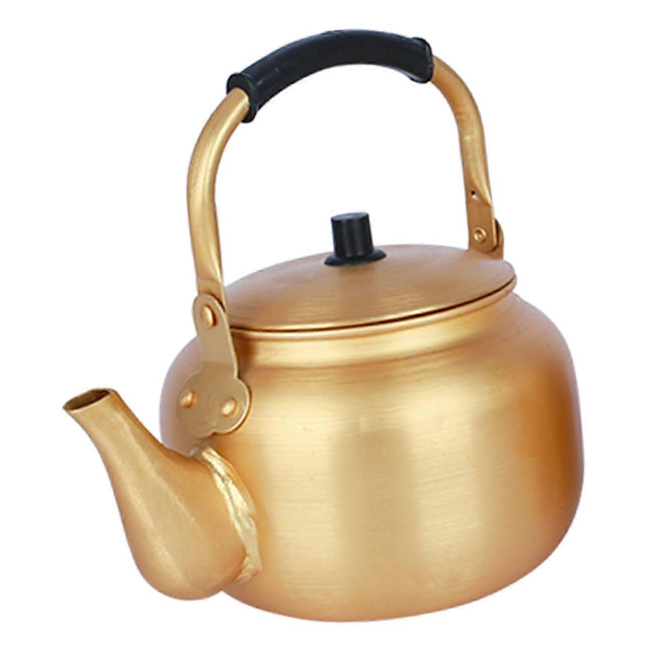 Small Yellow Aluminum Tea Kettle with AntiScald Handle and Narrow Spout for Fast Water Heating