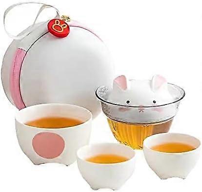 Chinese Ceramic Tea Set with Cute Rabbit Design, Portable Gift for One, Year of the Rabbit