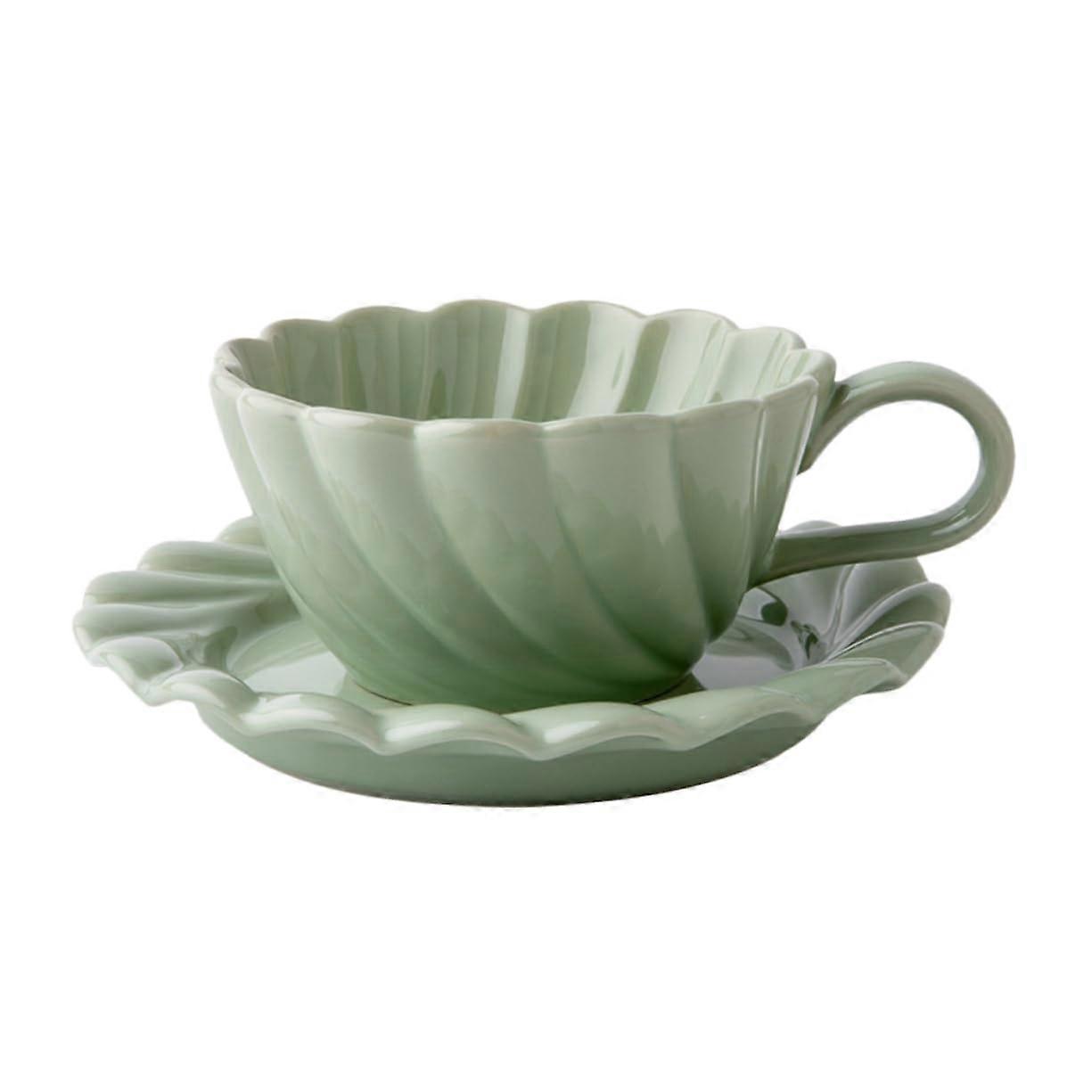 Ceramic Coffee Mug Set with Lid and Saucer, Aesthetic Handmade Green Tea and Latte Cups for Home