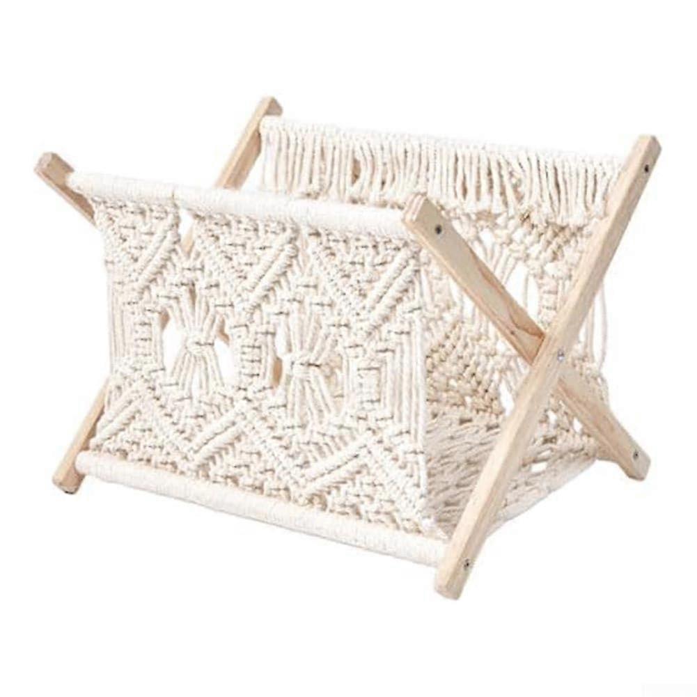 Hand Woven Wood and Cotton Rope Magazine Rack Holder, Foldable Decorative Storage for Books and Newspapers