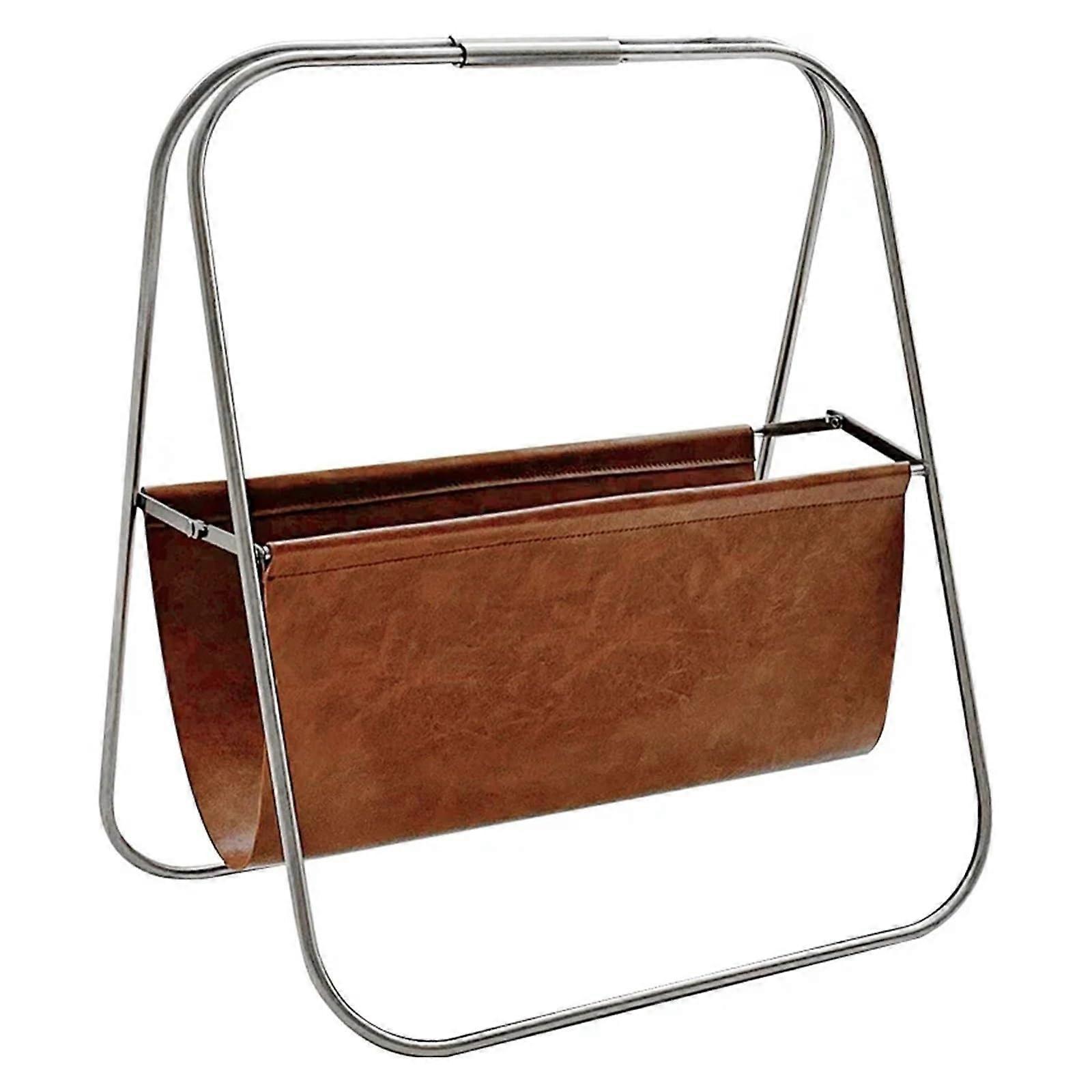 Metal Leather Floor Standing Magazine Rack and Newspaper Holder with SpaceSaving Decorative Design for Bathroom Corner Brown