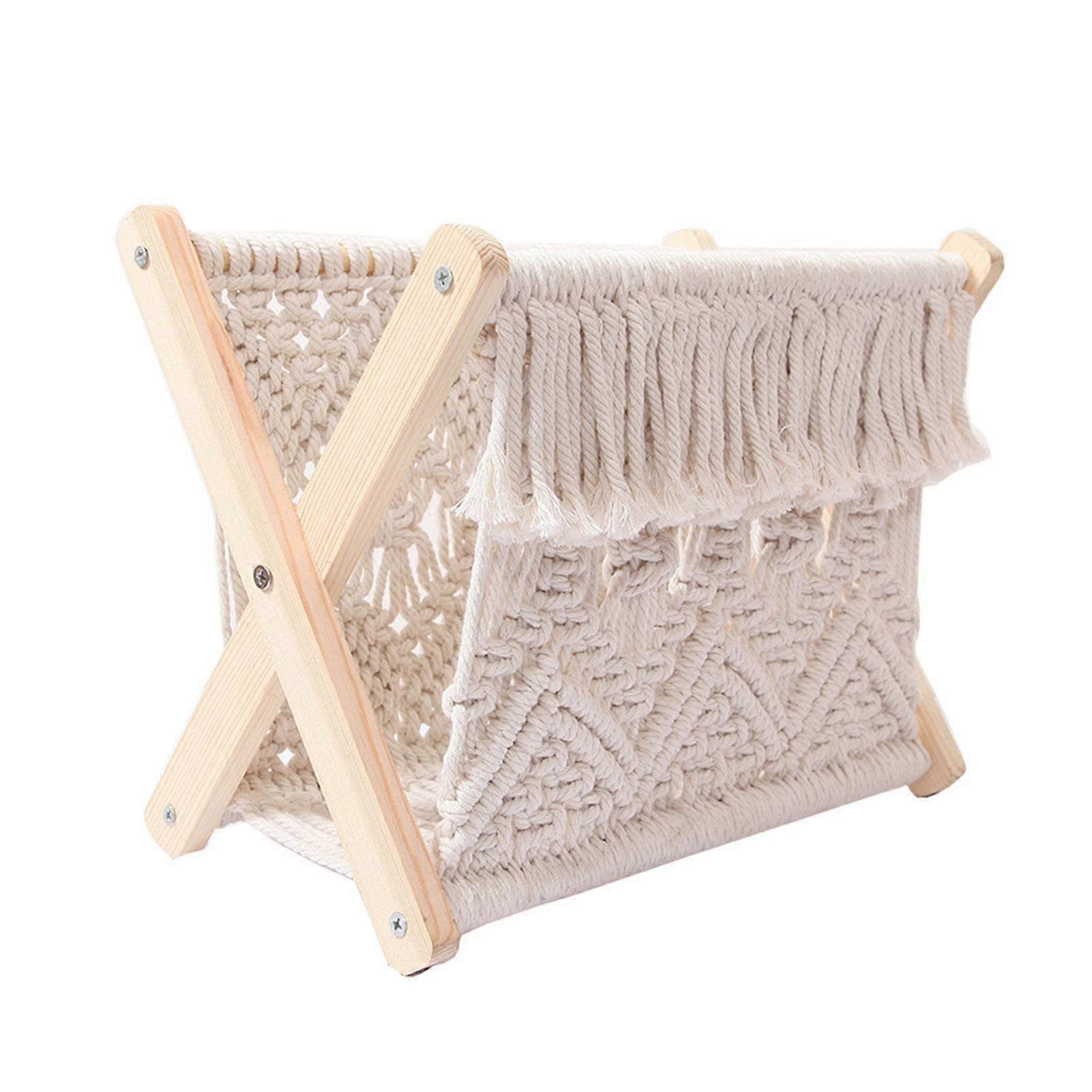 Macrame Magazine Rack Cotton Woven Holder for Books Newspapers Boho Home Decor Storage Basket