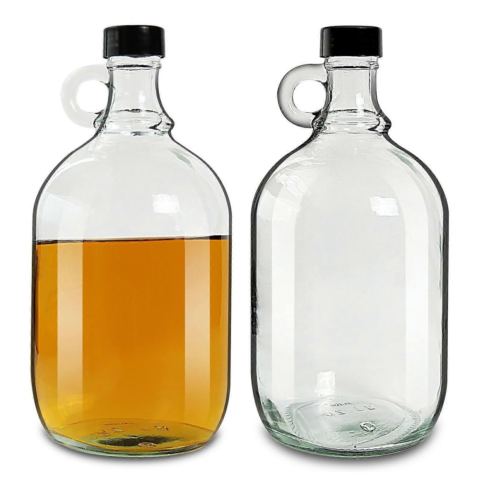 Package includes 2 pack bottles, each half a gallon (70 oz, 2 liter) with screw cap, that ensures proper sealing for fermenting your favorite drink. Large capacity and durable design Thick glass body provides strength for repeated use. Each bottle offers a halfgallon capacity, suitable for daily use. Ideal container for brewing, fermenting, and storing a variety of liquids. quality and safe materials Lead 100% foodsafe grade glass. temperature resistant and clear for easy visibility. Thickened glass bottle body adds strength and longevity. Multipurpose uses Suitable for beer, wine, kombucha tea brewing, purified water, vanilla extract, or laundry soap. Versatile, reusable glass that supports a range of fermentation and storage needs. Use scenarios Home fermentation and aging of beer or wine, with reliable sealing to prevent leaks. Brewing and storing kombucha tea, or other fermented beverages. Storing vanilla extract or homemade cleaners and liquids that benefit from a clear, durable glass container.
