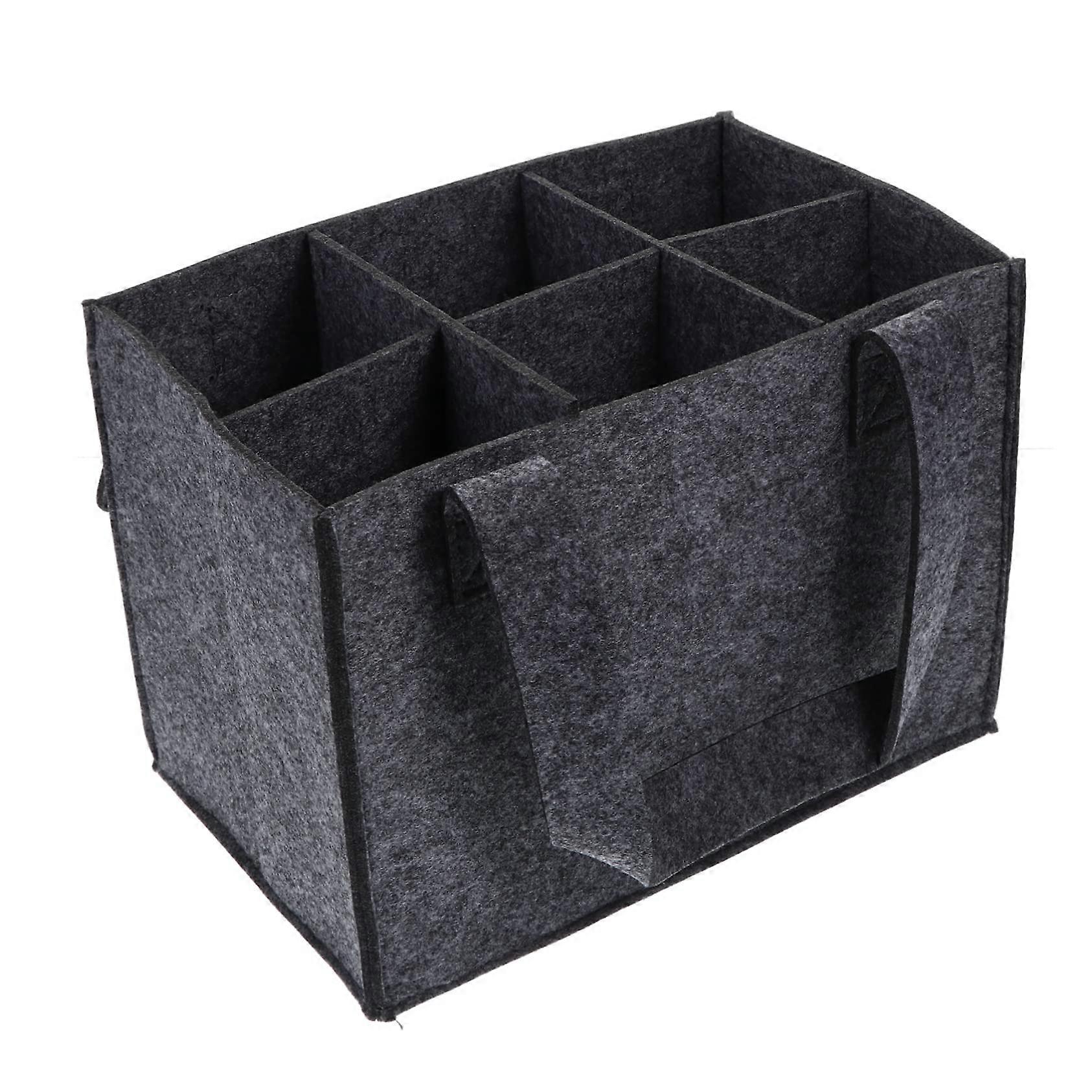 Felt Wine Tote Bag 6Bottle Carrier with Dividers, Foldable Travel Holder for Picnic Camping