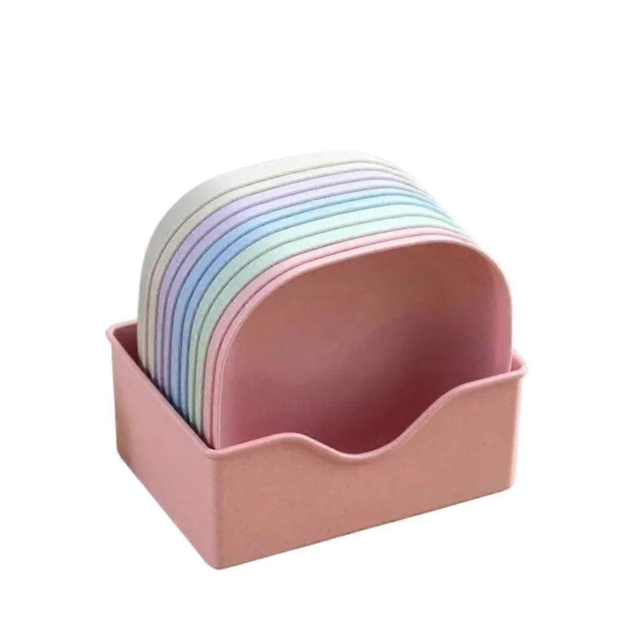 Dessert Plates Set 10pcs Square Plastic Plates with Holder for Snacks Candy Cookies Parties