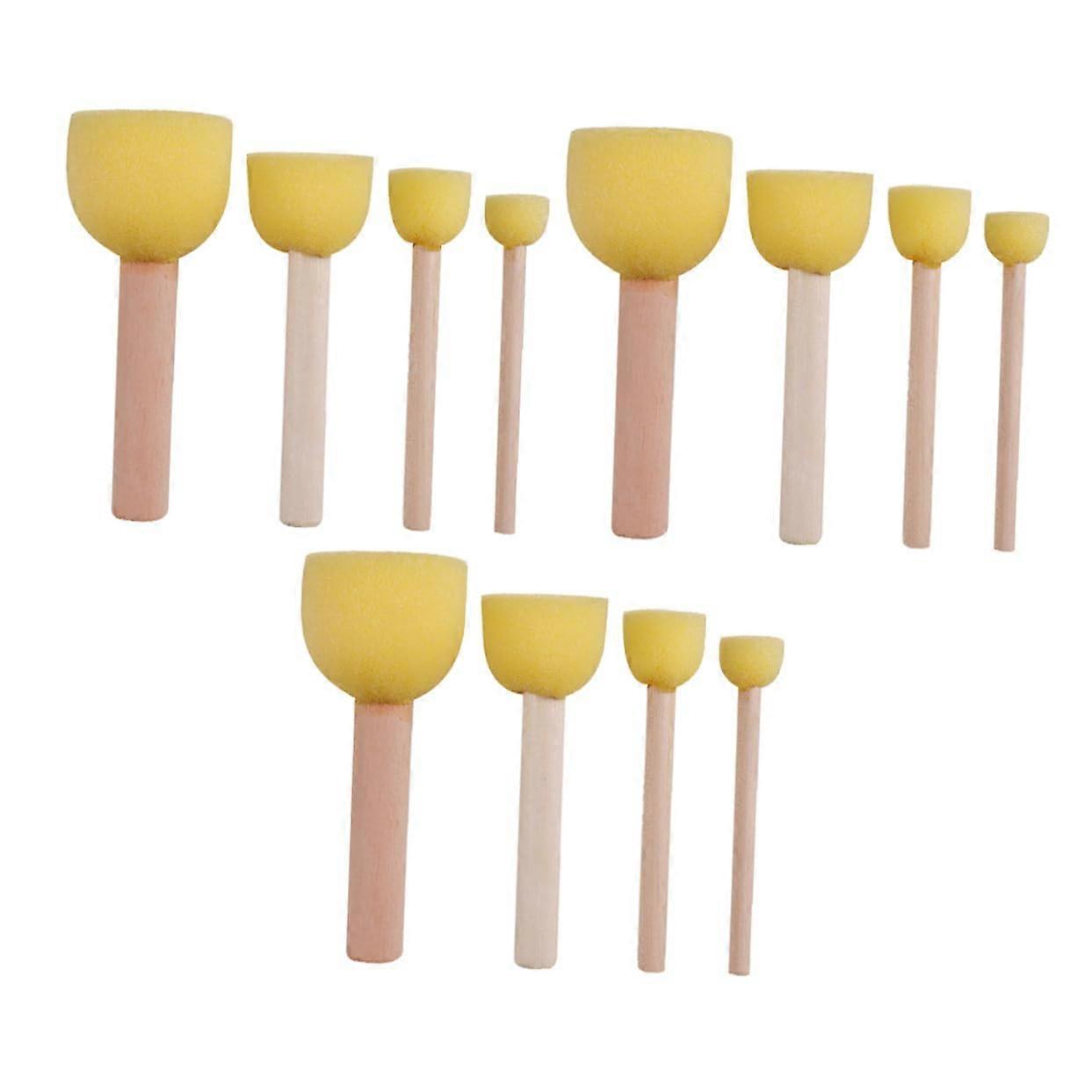12 Pcs Sponge Paint Brushes with Wooden Handles Round Foam Sponges for Kids Crafts and Painting