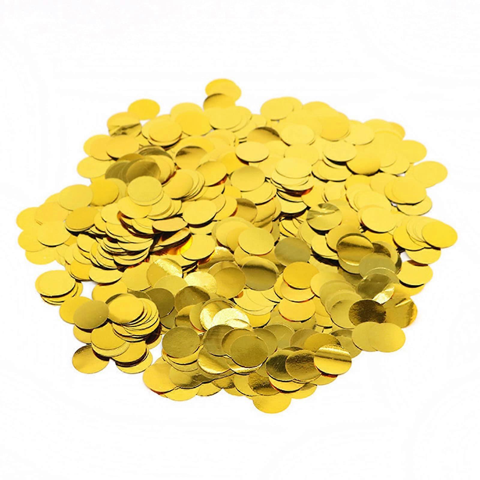 Gold Round Foil Confetti — Shiny Table Confetti, 0.59 in (1.5 cm), 1.76 oz (50 g) What it is shine gold round confetti made from foil. quality craft foil confetti for adding reflective sparkle to events and projects. Key benefits Instant polished look: bright, reflective foil adds elegant shimmer to tables, centerpieces, and displays without extra effort. Versatile and easy to use: lightweight rounds are simple to scatter, fill, or tuck into favors and balloons. Readysized and convenient: each piece is 0.59 in (1.5 cm) — large enough to be visible in photos, small enough to mix with other decorations. Specifications Material: Foil Color: Gold Shape: Round Size: 0.59 inch / 1.5 cm per piece Weight: 1.76 oz / 50 g Quality: quality craft foil confetti Where it works Tables and centerpieces: scatter across reception tables, dessert tables, or cocktail bars for a consistent, upscale look. Confetti balloons: add to clear or latex balloons before inflating to create eyecatching confetti balloons. Gift and display fillers: tuck into present boxes, clear bottles, jars, or favor bags as decorative fillers. Practical use scenarios Wedding reception: scatter the gold foil confetti across guest tables and aisle decor to create coordinated sparkle in photos and during the ceremony. DIY confetti balloons: pour confetti into clear balloons, shake to distribute, then inflate for affordable, showy balloons that catch light. Party favors and centerpieces: fill clear bottles or small boxes with confetti for instant, cohesive decor at bridal showers, birthdays, anniversaries, or Valentine's Day celebrations. How to use Scatter by hand for immediate table decoration. Use a funnel or paper cone to fill balloons, bottles, or small favor boxes cleanly. Combine with other sized confetti or ribbon for layered visual effect. Suitable for Weddings, bridal showers, anniversaries, birthdays, Valentine's Day, and general celebrations. A practical, shine finishing touch for event decor and craft projects — 50 g of gold round foil confetti ready to use.
