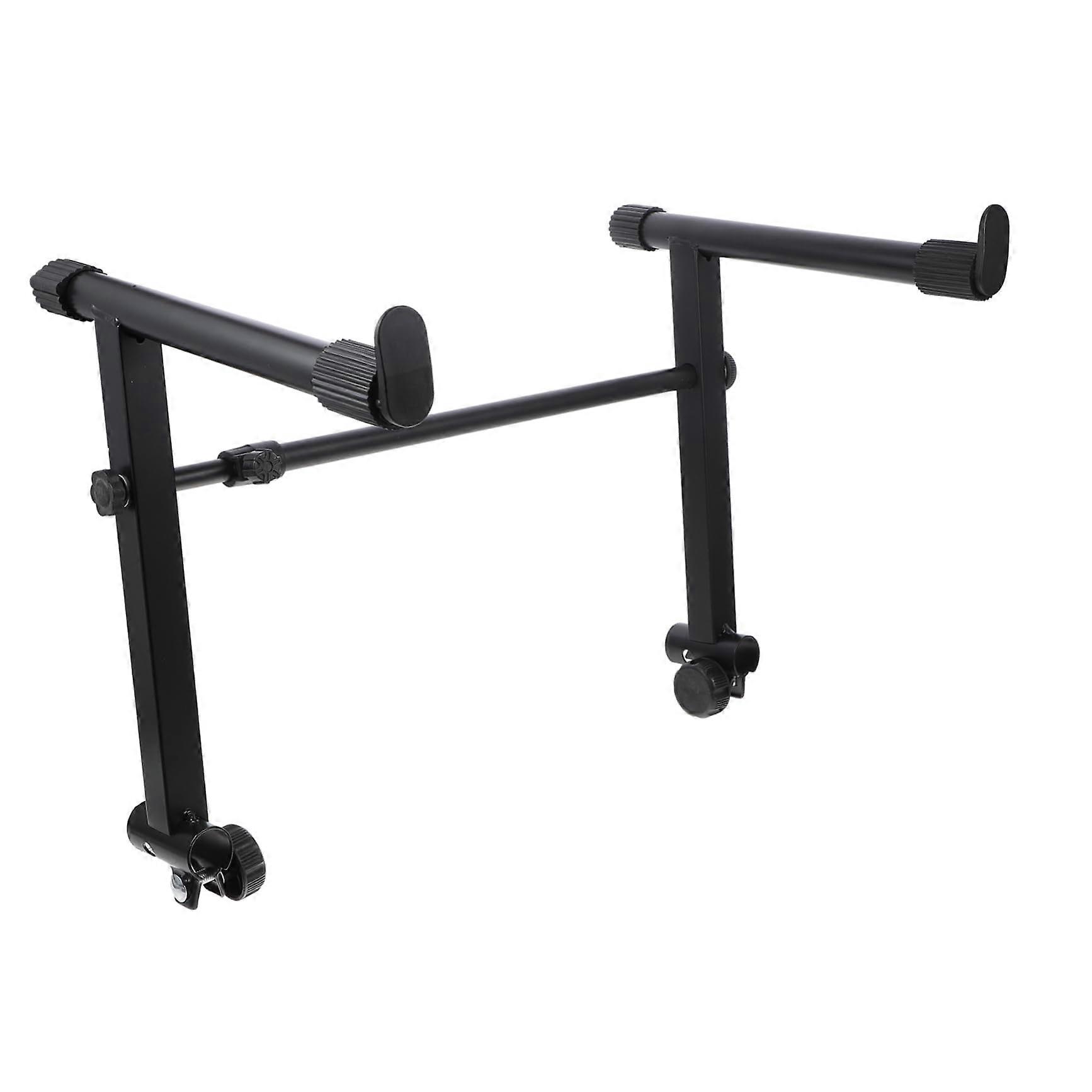 Universal keyboard stand extension with electronic organ rack This stand accessory provides a stable, protective mounting solution for keyboards and electronic organs. It includes a rubber pad to attach the keyboard to the stand for extra stability and scratch resistant protection. The width is adjustable to fit most keyboards, making it widely compatible. Antiskid strips on the ends of the support rods help fix the keyboard in place. The design heightens the original keyboard stand to improve playing height and posture. Key features and benefits Stability and protection: a rubber pad attaches the keyboard to the stand, reducing movement and protecting finishes from scratches during use. Universal fit and adjustability: adjustable width accommodates a wide range of keyboard sizes, enabling universal use across different models. Secure mounting: antiskid strips on the ends of the support rods grip the keyboard to prevent sliding while playing. Heightened playing position: the accessory raises the keyboard height, promoting better ergonomics and comfortable reach. Easy integration: designed to work with common keyboard stands, enabling straightforward attachment and setup. Use scenarios Home studio practice: elevate the keyboard to a comfortable height while protecting its surface, improving posture during long practice sessions. Stage or live performance: quickly adjust width to fit the keyboard in use, with antiskid strips providing secure placement for reliable stage playing. Rehearsal and teaching environments: tailor the height and width to suit players of different ages and heights, enhancing teaching and ensemble performance.