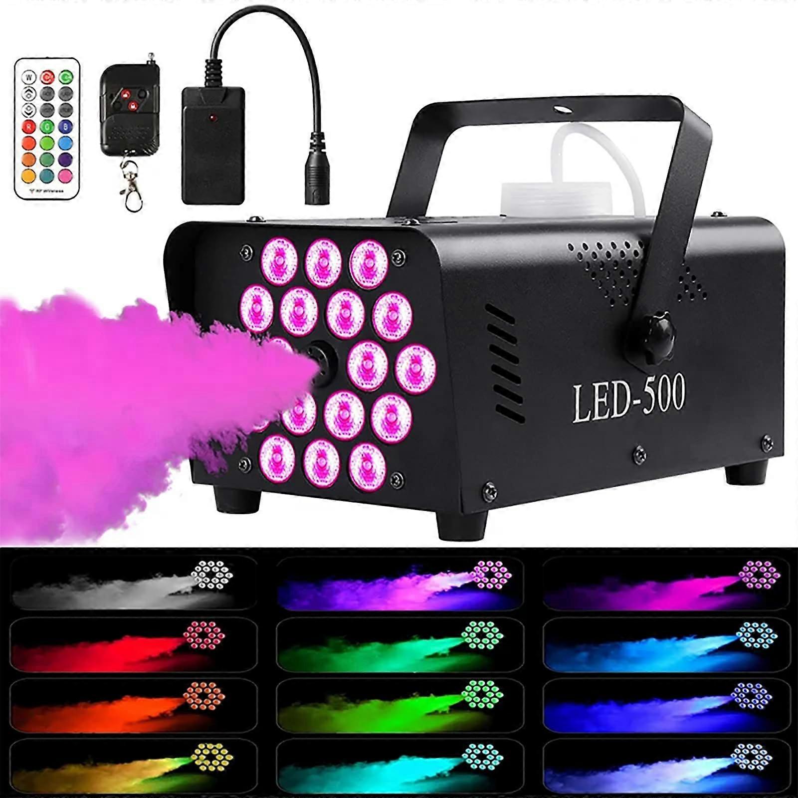 500W RGB Fog Machine with Wireless Remote, Colorful Smoke Effects for DJ Stage Party Events