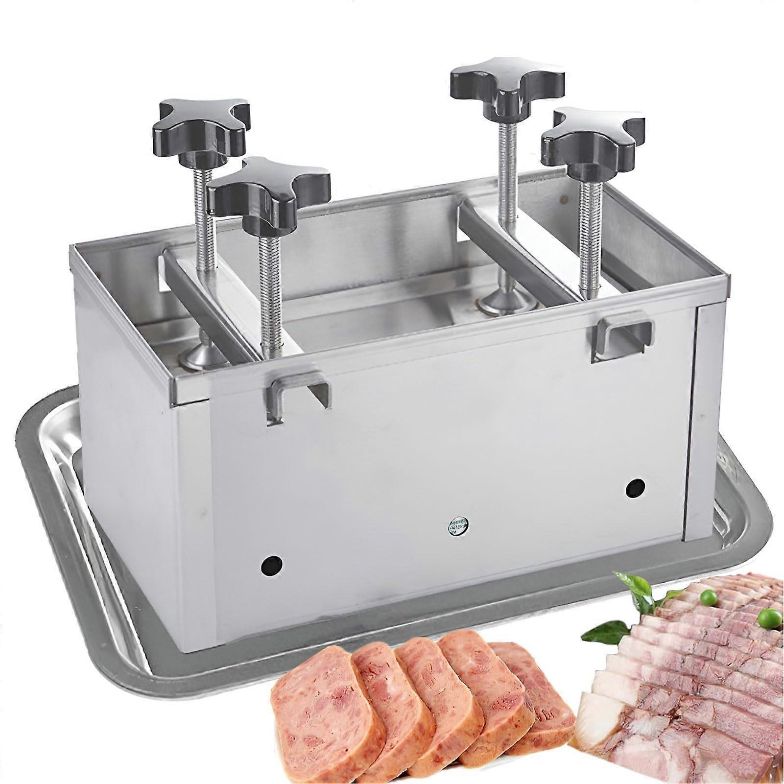 Effortless Meat Pressing 4screw pressurizing system provides higher pressure when pressing down, enabling efficient oil filtering and consistently shaped minced meat cubes every time. Eliminates uneven shapes. Quality Material Made from foodgrade 304 stainless steel for exceptional quality and longlasting durability. Its refined design adds color to your kitchen and makes it a trustworthy addition to any culinary space. Easy to Operate Simple threestep process: place cooked meat in the machine, cover with foodgrade cheesecloth, tighten the screws, and wait 812 hours. Create delicious pressed meat dishes with minimal effort. Mess Operation Includes a soup tray to collect any juice leakage, keeping your countertops clean before and after use. Key details Material: 304 stainless steel Press system: 4screw Operation: three steps (place meat, cover with cheesecloth, tighten screws) Waiting time: 812 hours Accessories: foodgrade cheesecloth; soup tray Use scenarios Home burgers and meatloaf prep: produce uniform pressed meat cubes for even cooking and better texture. Charcuterie and terrine applications: shape and compress meats for consistent slices and presentation. Batch meal prep: prepare portioned pressed meat in advance for quick, quality meals throughout the week.