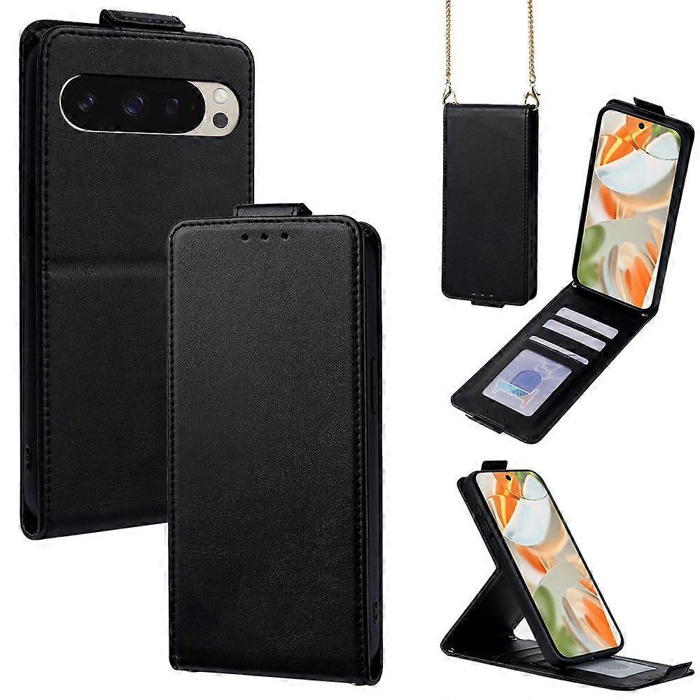 Vertical Flip Cover Solid Color Vegan Leather Phone Case with Crossbody Chain