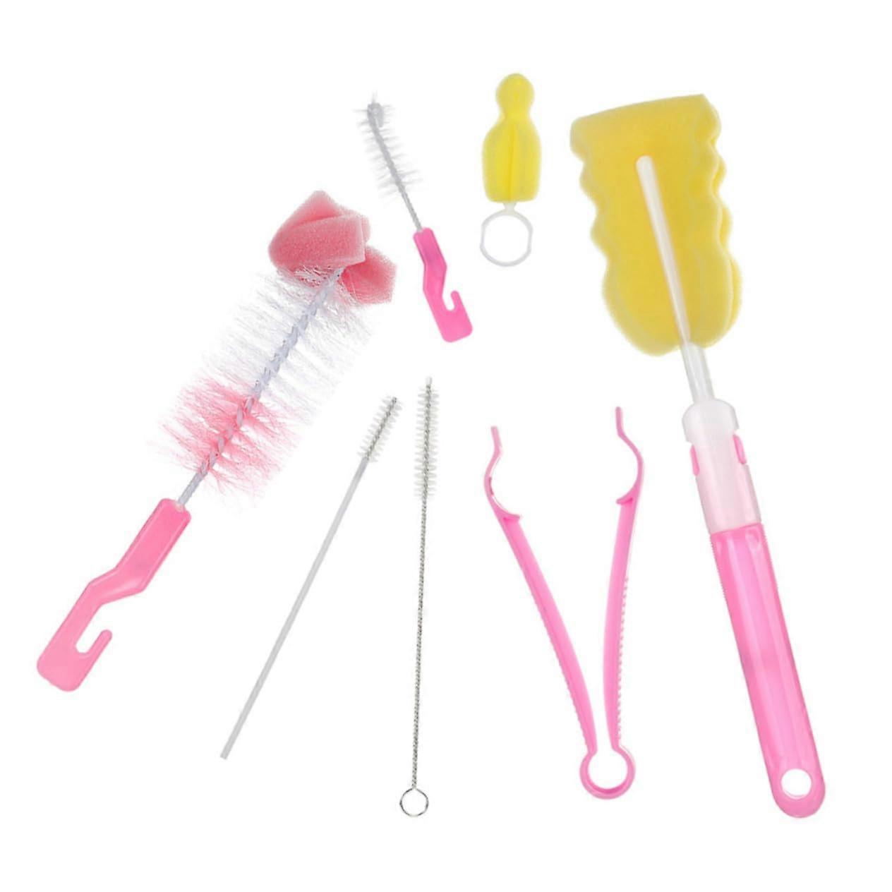 14pcs Baby Bottle and Pacifier Cleaning Brush Set with Density Sponge for Bottles and Pumps Pink