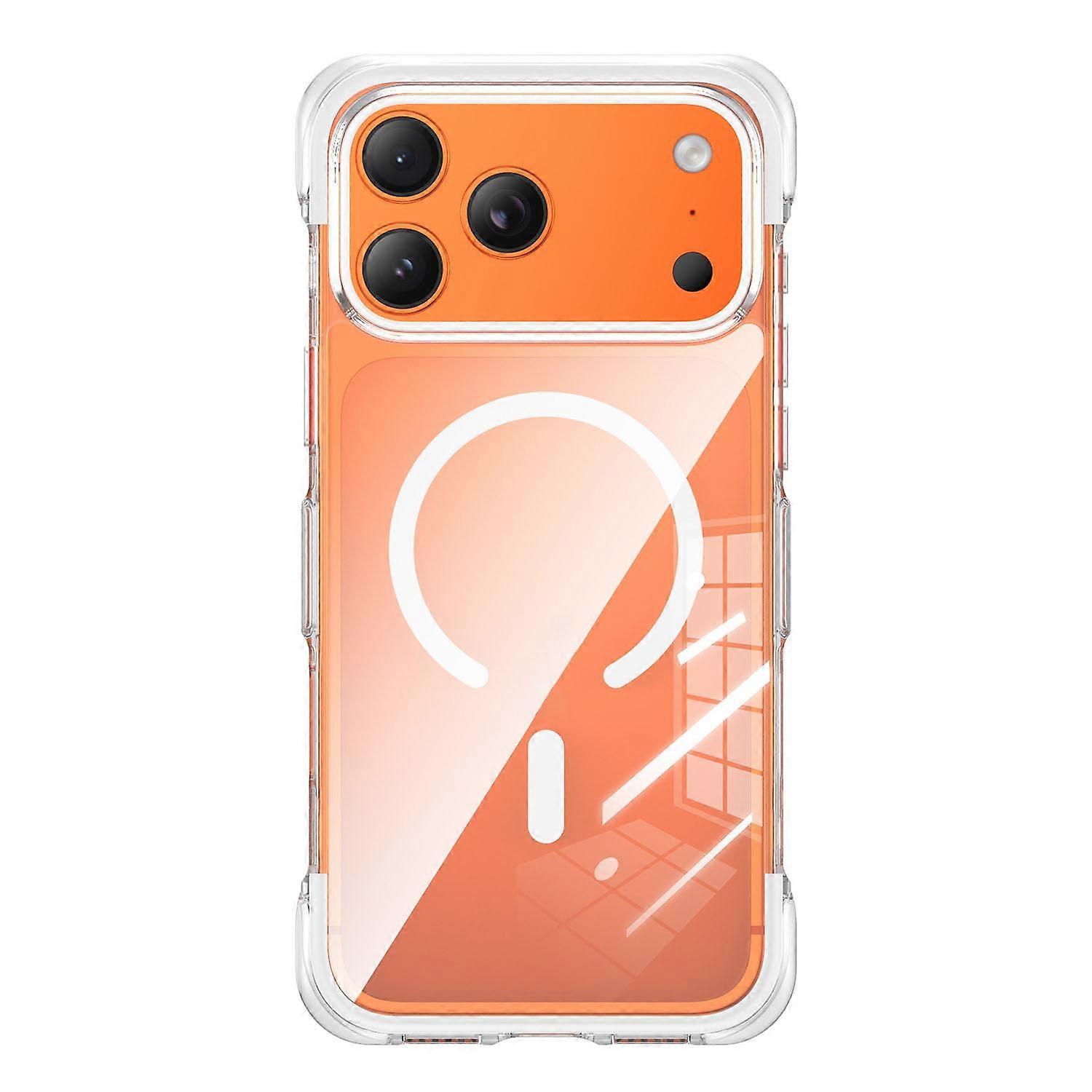 Vacuum-Sealed Transparent Airbag Magnetic Acrylic Phone Case 1. Material: Transparent acrylic scratch-resistant backplate, maintaining lasting clarity and resistance to yellowing. Reinforced TPU transparent soft-edge frame offers impact protection while preserving the device's original aesthetic. 2. N52 Strong Magnets: Provides powerful magnetic adhesion for secure attachment of magnetic accessories. Magnetic design supports wireless charging for convenient use. 3. Transparent Design: Ensures the device natural beauty remains visible, preserving its aesthetic appeal. 4. Air-Cushioned Corners:Integrated air-cushioning at top and bottom edges enhances drop protection, shielding the device from impacts at any angle. 5. Precision Cutouts:Large, precisely cut camera aperture facilitates easy access without compromising functionality, ensuring full device performance.