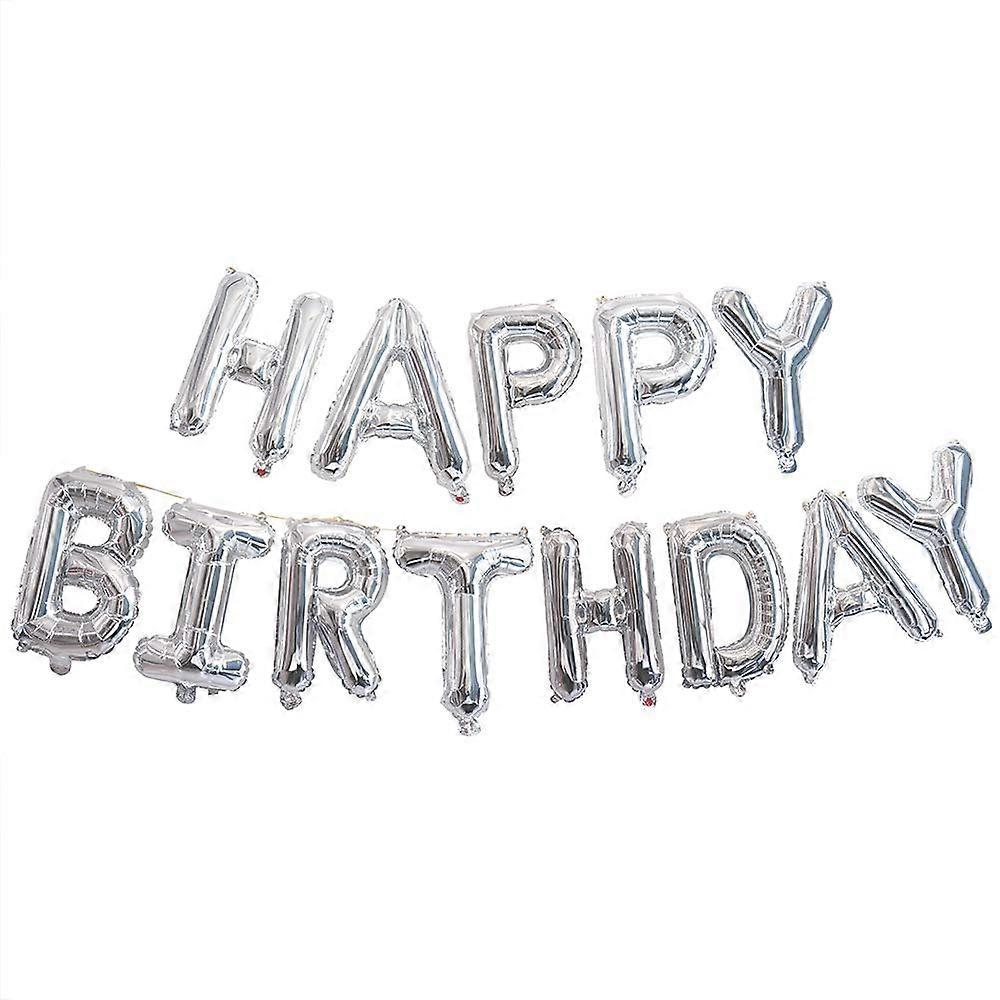 Happy Birthday Balloons Banner Kit Silver Foil Glossy Letters Reusable Party Decorations for Adults and Kids