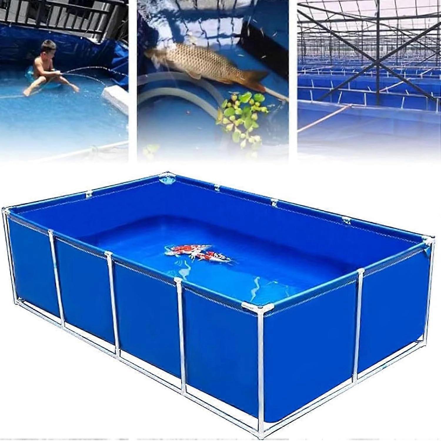Durable aboveground pond liner: Thickened PVC coated tarpaulin provides abrasion, aging and tear resistance. UVresistant for longterm use, it folds easily and withstands harsh environments. Ideal for creating a tranquil aquatic habitat. Stable frame for outdoor use: Galvanised steel pipe supports ensure a stable, tiltproof pool. The sturdy design enhances the main frame's loadbearing capacity, delivering reliable protection for outdoor spaces. Suitable for leisure and gardening water features. Easytoinstall large outdoor fish tank: Comes with a full set of accessories for quick setup by one person. Can be easily disassembled and stored when not in use. Facilitates a peaceful outdoor water feature with minimal effort. Multifunctional aboveground pond: Can be placed in front of the house and used for water storage, fish, shrimp, hydroponics planting, children's water play, garden watering, and watering flowers. Also suitable as a water tank or for water bags. Quick installation and convenience: Simply connect the steel pipes; one person can install rapidly. The system can be disassembled and stored away easily when not needed. Use scenarios Backyard fish pond: Create a tranquil habitat for fish such as koi or goldfish, with space for aquatic plants and easy maintenance. Garden irrigation and hydroponics: Use the pond as a water source for irrigation, hydroponic setup, or garden watering. Frontyard water feature and children's play: Provide a safe, engaging outdoor water play area or decorative water feature for family use.