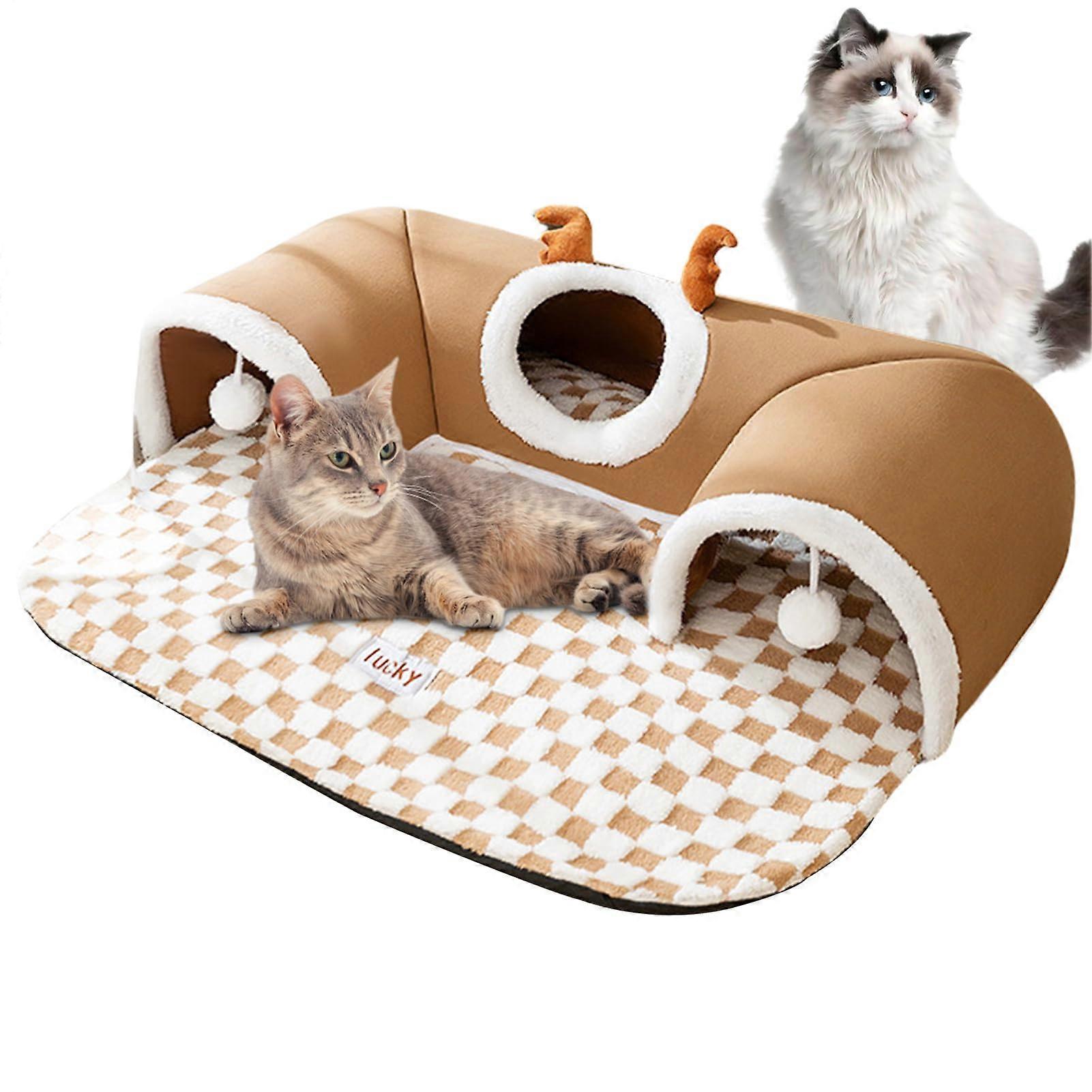 Cat Tunnel Bed with Thermal Foam for Indoor Cats, Corner Play Tube with Toys and Easy Clean Layers