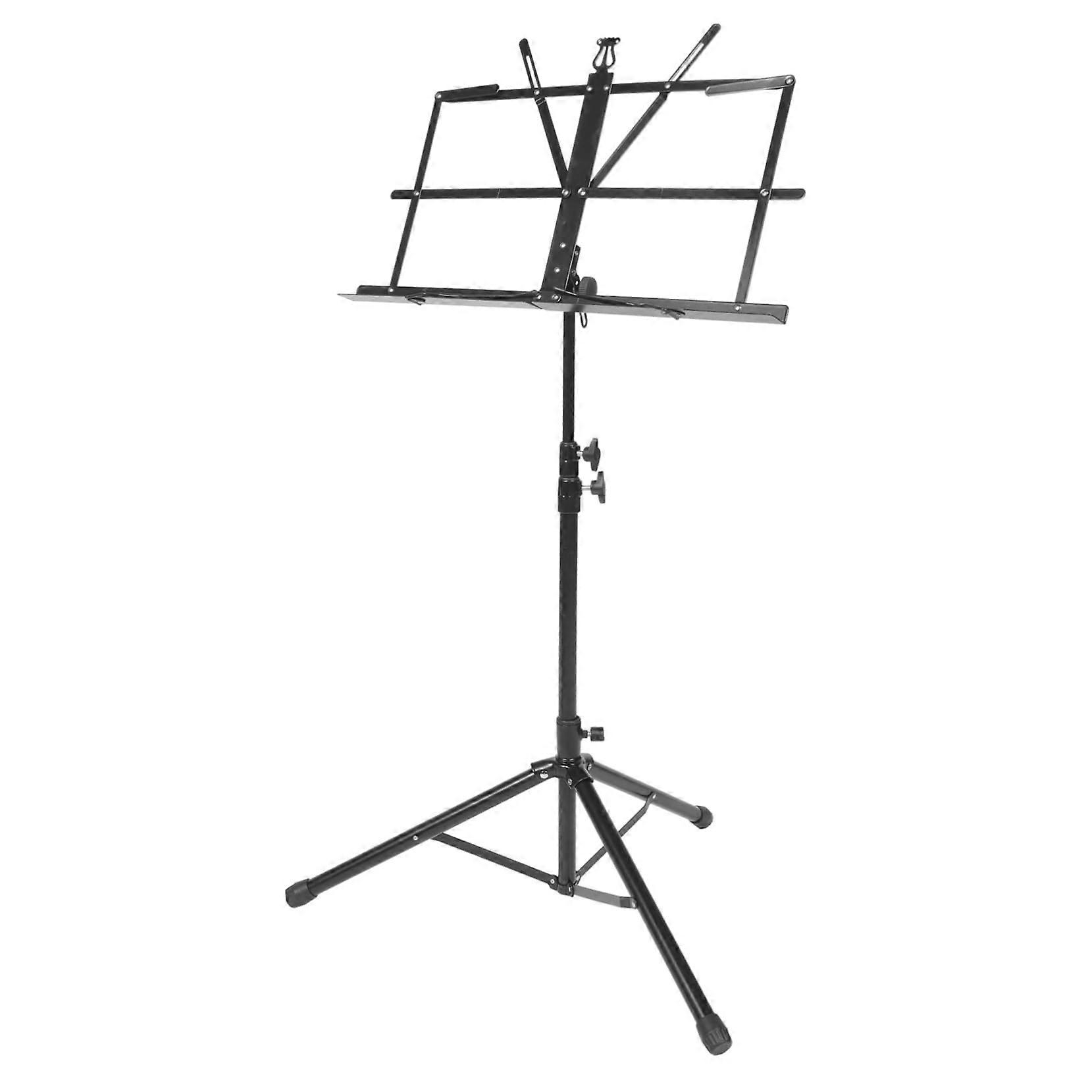 Tripod music score holder A versatile stand that can hold books, piano scores, and music scores for easy reading during practice or study. The tripod design provides stable, hands support so you can turn pages without interrupting your performance. Foldable textbook holder Built from wearresistant iron for longlasting durability. The foldable design enables compact storage when not in use, making it simple to transport between practice spaces or classrooms without sacrificing strength. Reading book holder The tripod base design ensures stable placement on the floor and minimizes the risk of tipping over. This makes it reliable for reading sheets or books while seated or standing at the stand. Iron music stand Multipurpose and constructed from iron for professionalgrade score holding. This stand is suitable for various reading and display needs in practice, rehearsal, or performance settings. Use scenarios Home practice and study: place the stand on the floor or beside your chair to read books, piano scores, or music scores hands while playing. Studio, classroom, or rehearsal room: use the stand to hold textbooks and scores for easy reference during lessons or group practice. Small performances or backstage: rely on the stable tripod base to keep your scores visible and secure during transitions and quick changes.