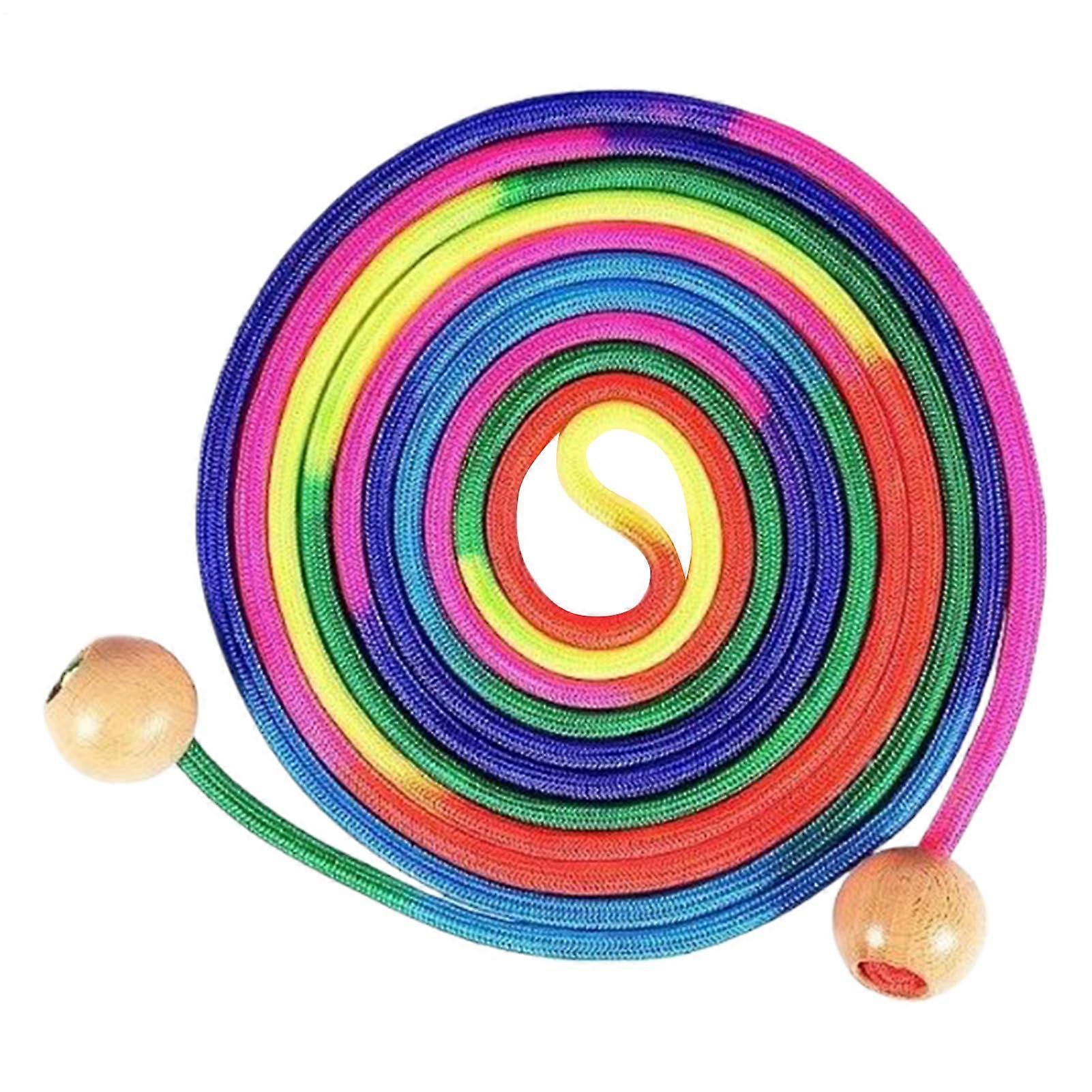 Jump Rope for Kids 16.4ft Rainbow Skipping Rope with Wooden Handles, Adjustable for Group Play