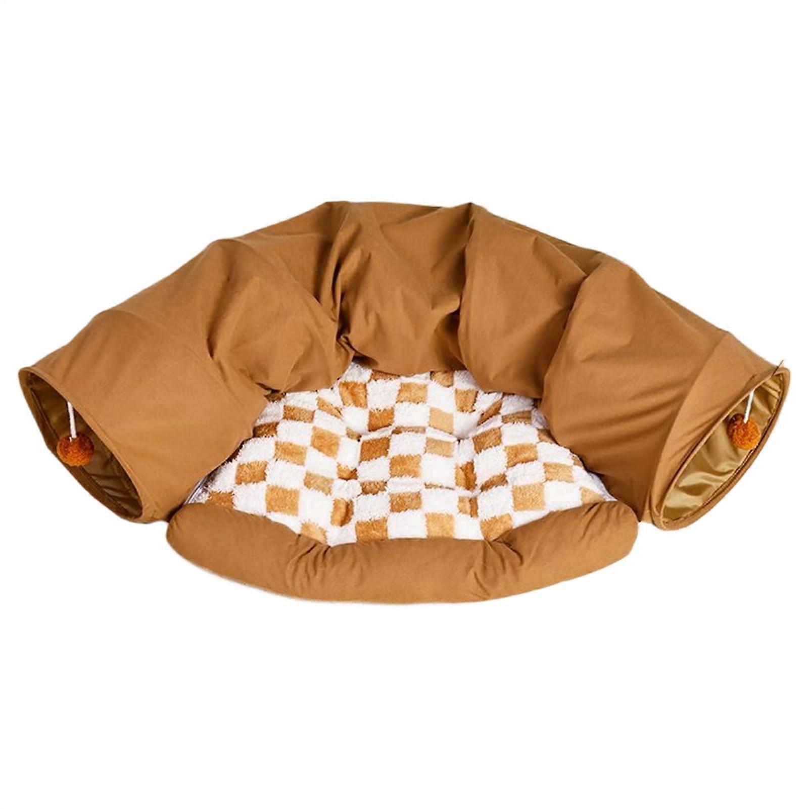 Foldable Cat Tunnel with Warm Cave Bed for Indoor Cats and Small Pets, Washable Pad Included