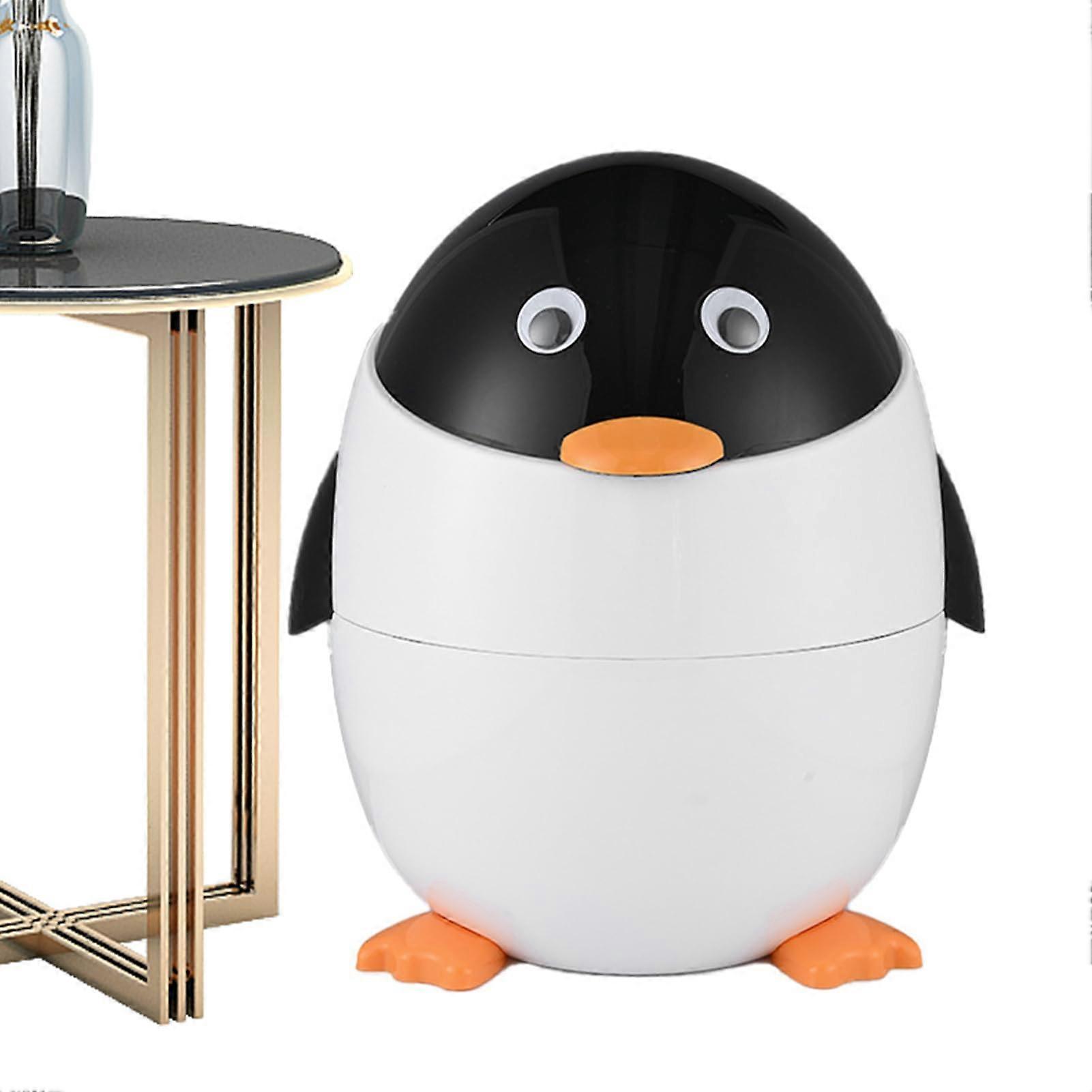 Decorative Trash Can with OdorSealing Lid, Cute Penguin Flip Bin for Kitchen, Bathroom and More